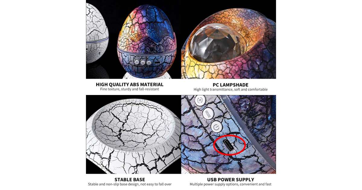 Dinosaur Egg Night Light with White Noise Function and Built-in Speaker / ZMR-LMP-4 description of