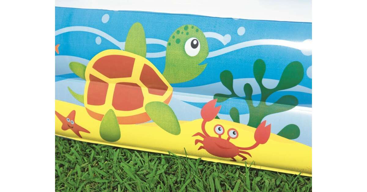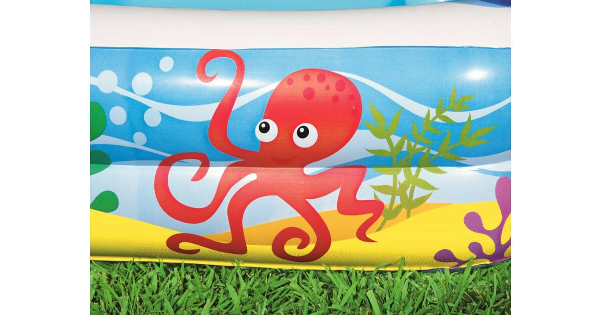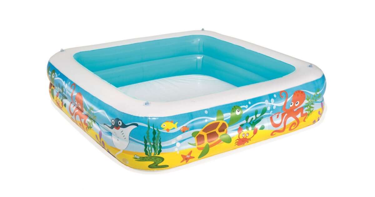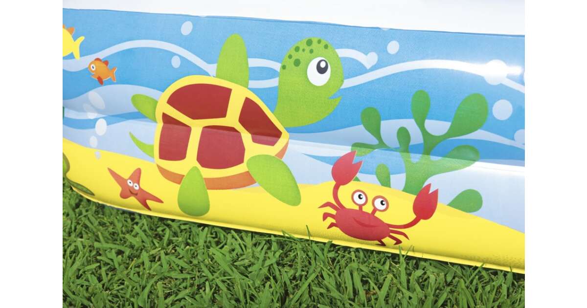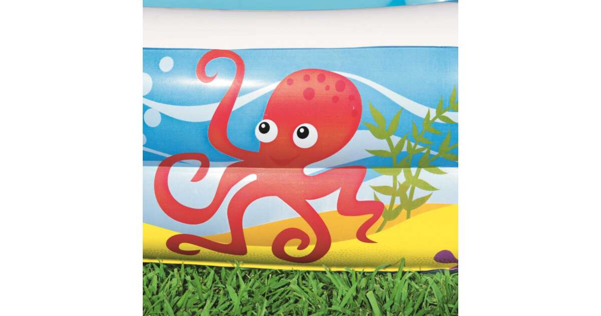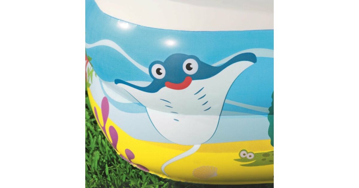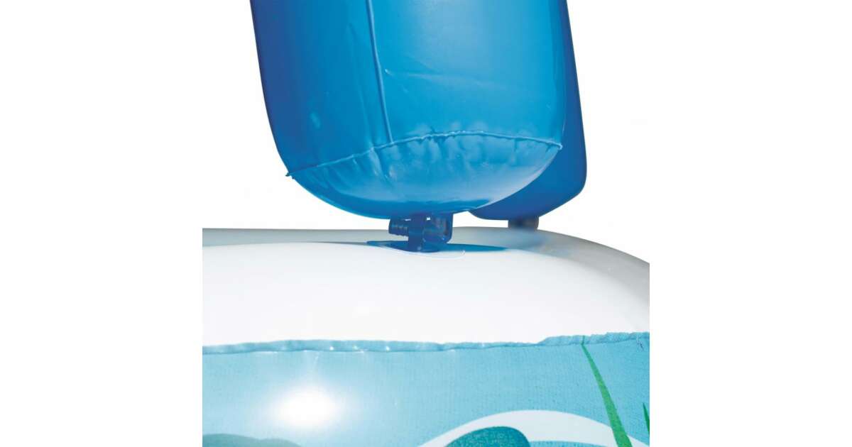 This Bestway inflatable kids pool is perfect for those hot summer days! The built-in sunshade protects your little ones from harmful rays, so they can enjoy splashing around safely. Parents can rest easy knowing the pool is made of durable vinyl and features two safety valves to prevent air leaks. Easy inflation and two separate air chambers provide extra stability.