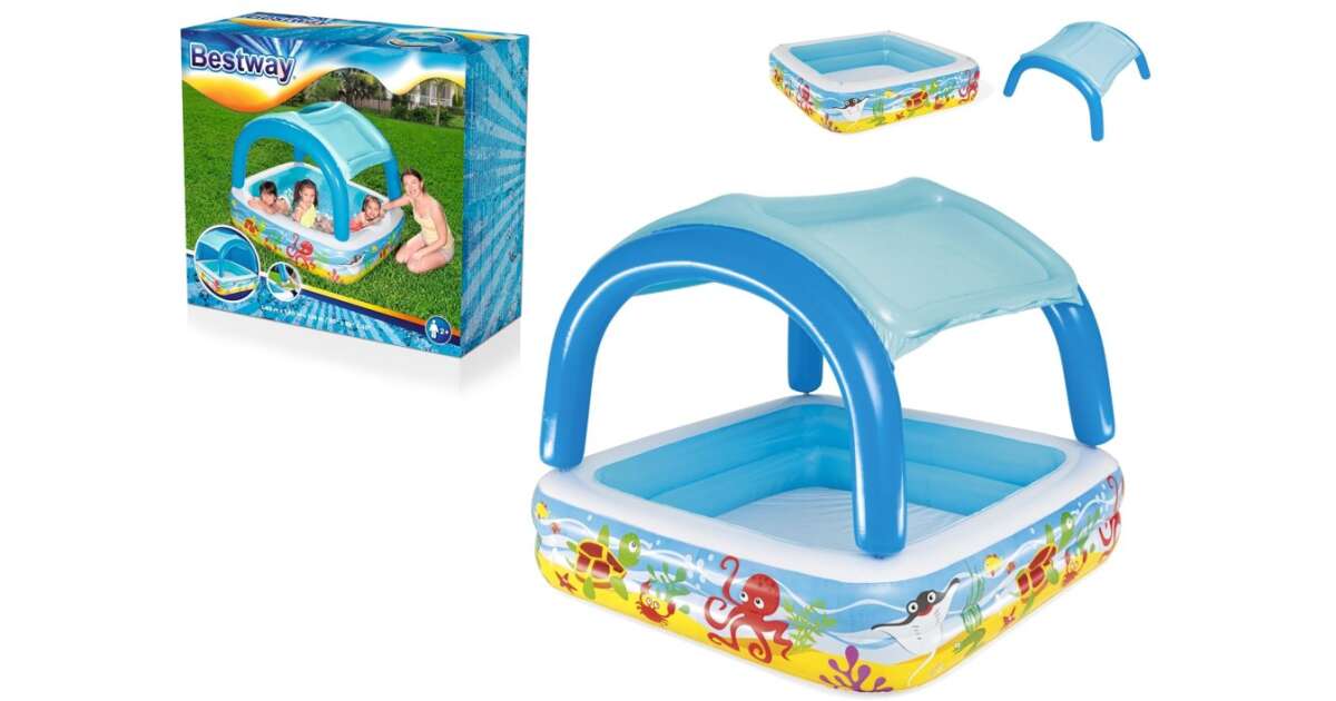 Bestway Inflatable Kids Pool with Sunshade - 140x140x114 cm ☀️💦