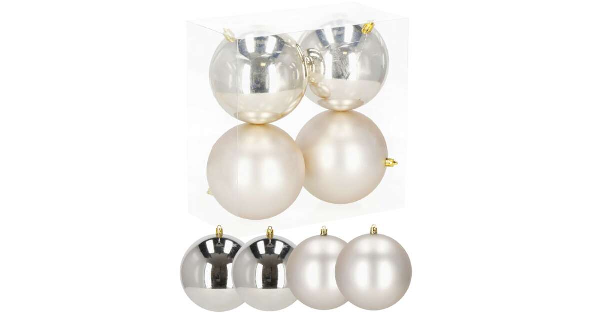Create an elegant and festive atmosphere on your Christmas tree with this set of 4, 12 cm Springos Christmas ball ornaments! The set includes 2 matte and 2 shiny silver balls, making them perfectly combinable with other decorations.