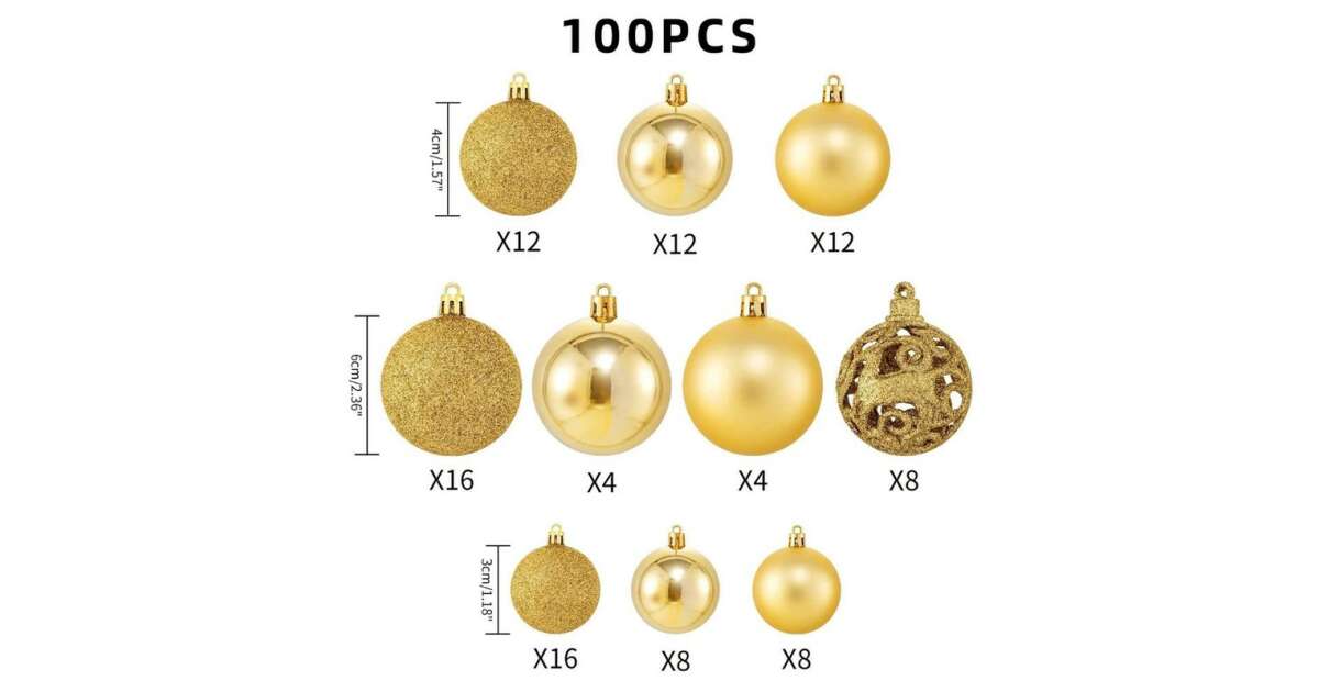 Mercaton® Set, 101 Golden Globe Christmas Tree Ornaments, Globe Diameter: 6/4/3 cm shopping: