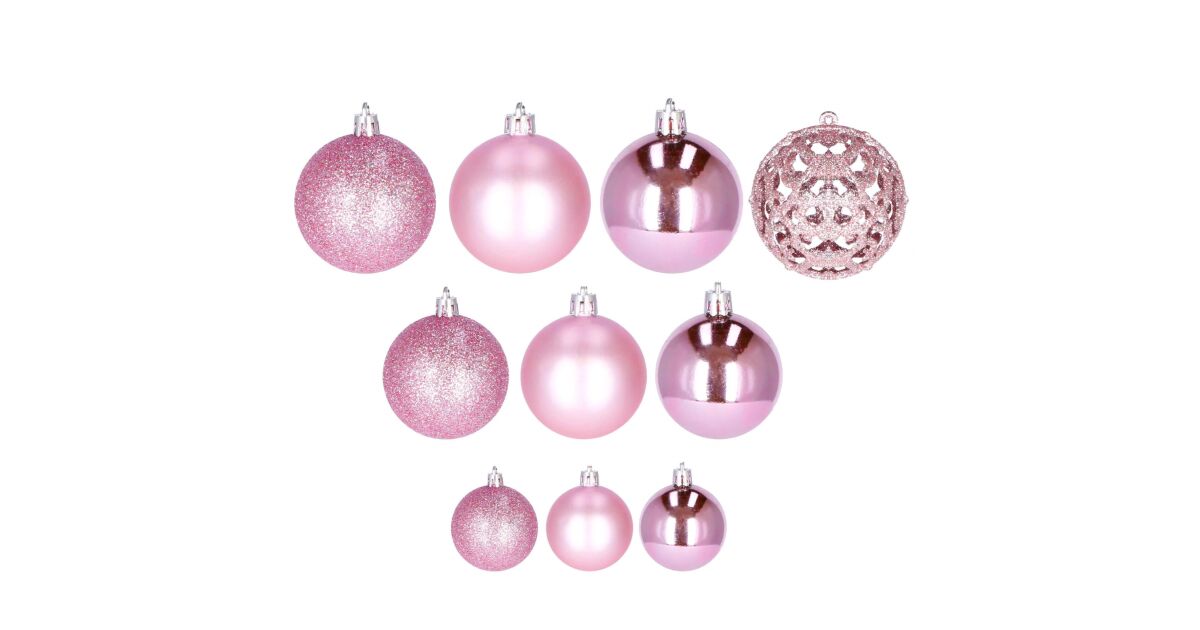-Springos 100-piece Christmas ball set for Christmas tree, with hangers, plastic, diameter 3/4/6 cm, pink description of