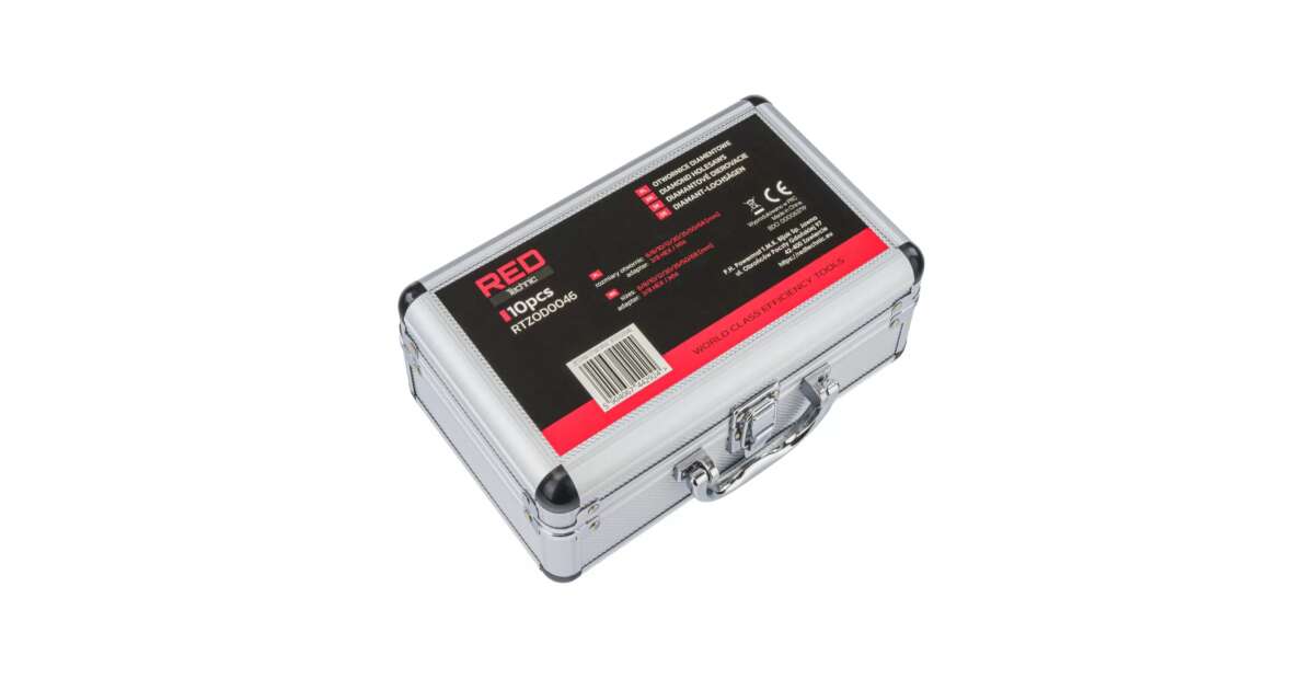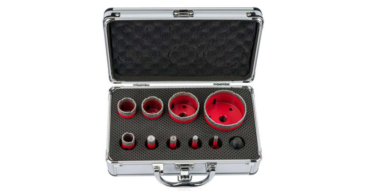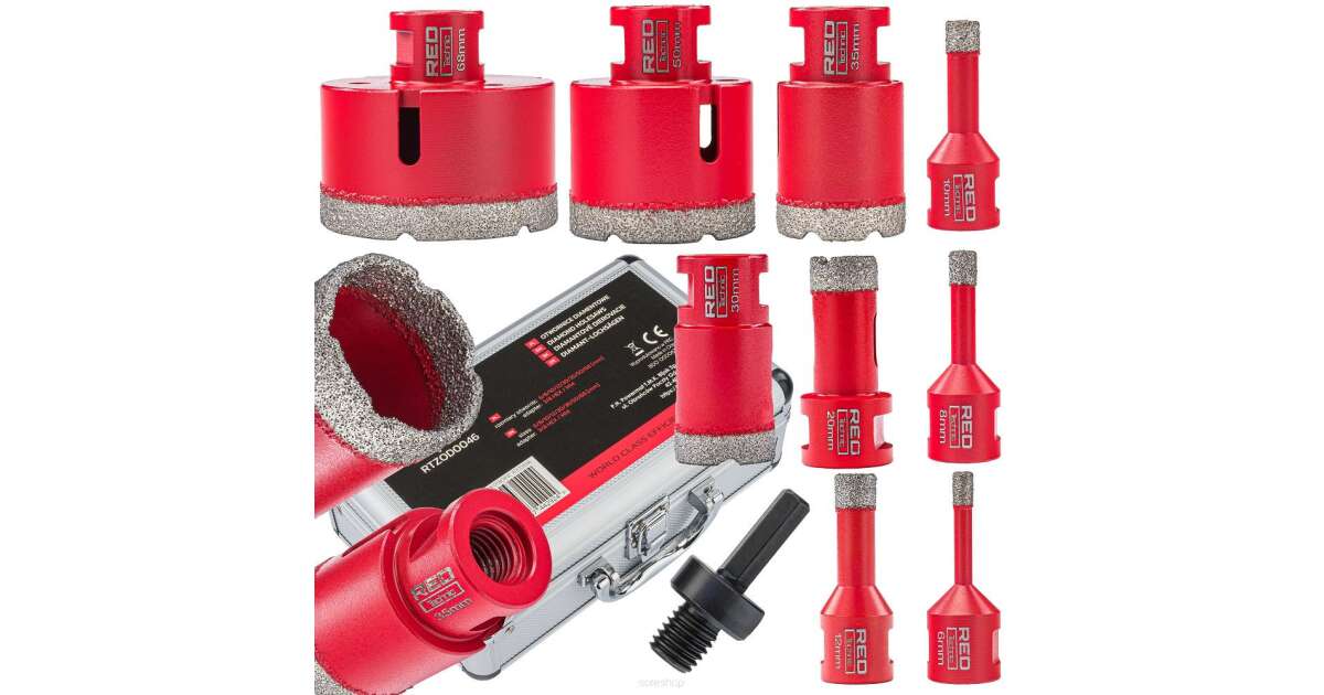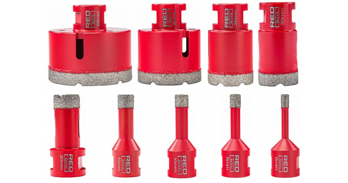 This 9-piece Red Technic diamond drill bit set is perfect for precise hole drilling in tiles, granite, glass, ceramic, natural stone, and stoneware. The set includes different sized drill bits (6-68 mm), so you'll find the right tool for every job. Thanks to the HEX adapter, it can be used with an angle grinder and a drill (angle grinder not included).
