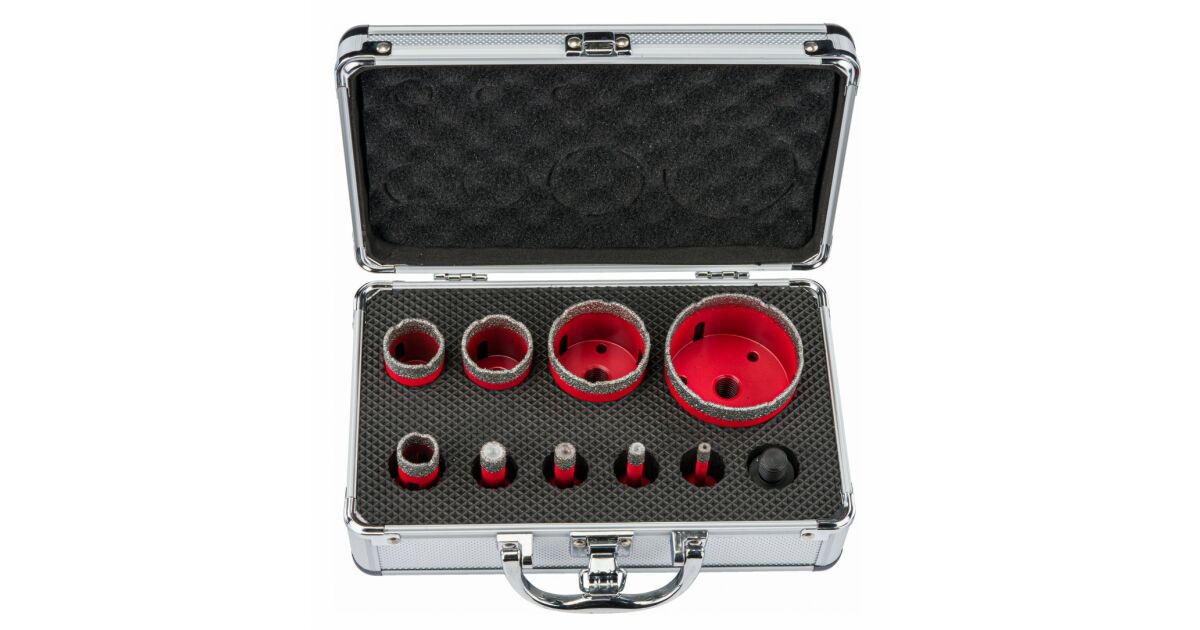 - 9 diamond drill bits (6, 8, 10, 12, 20, 30, 35, 50, 68 mm)