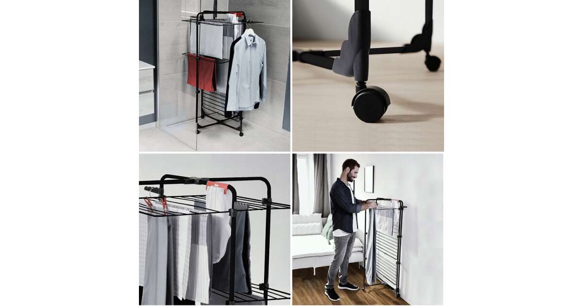 This practical clothes dryer is the perfect solution for small apartments where space saving is essential. Despite its 30 meters of drying space, it has compact dimensions, so it can easily fit in the bathroom or other small rooms. The matte black color gives it an elegant and modern look.