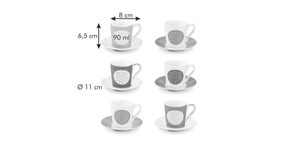 myCOFFEE Espresso Cups with Saucers, 6 pcs, Sugar