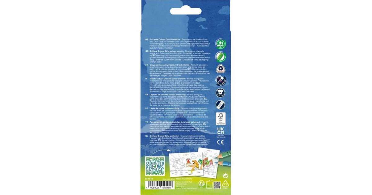 This Faber-Castell Grip Dinosaur coloured pencil set is perfect for any little dinosaur fan! It contains 13 vibrant colours, including 3 metallic colours, to make drawings even more beautiful. The pencils have an ergonomic, triangular shape, making them comfortable to hold and ensuring fatigue-free drawing.