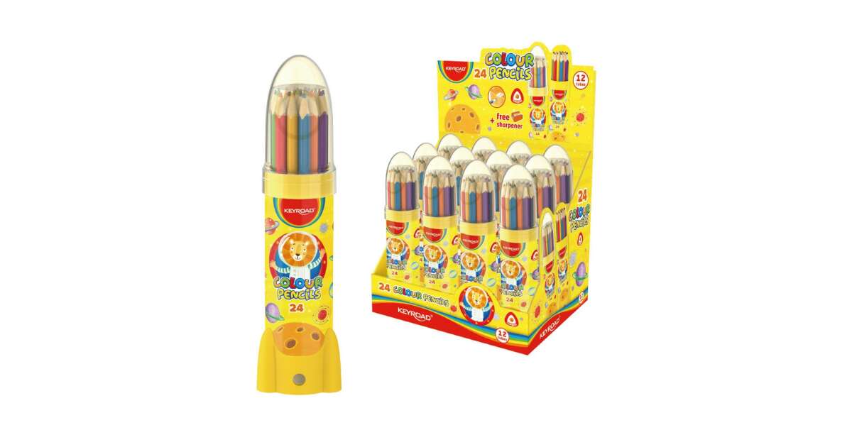 Coloured pencil set triangular, rocket in bottle keyroad 24 klf. colour description of