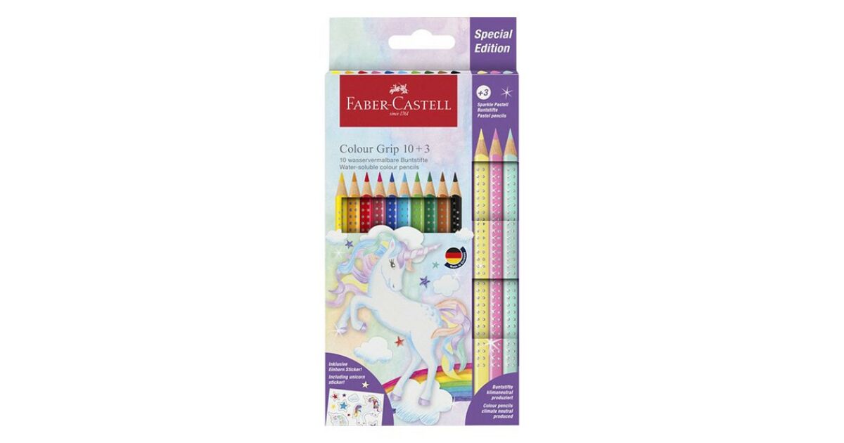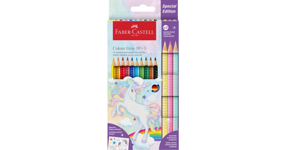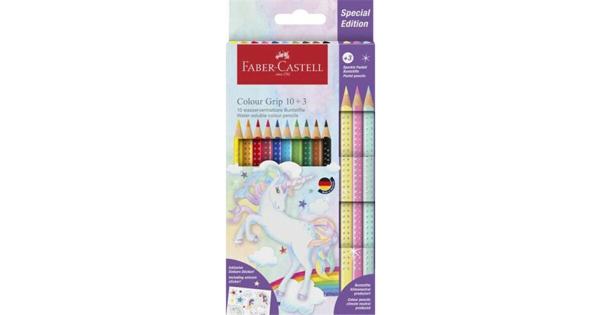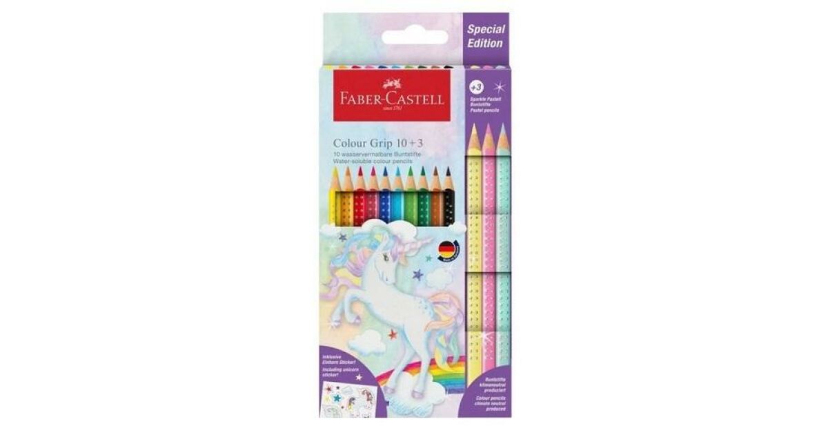 FABER-CASTELL Coloured Pencil Set, Triangular, FABER-CASTELL "Grip", 13 different colours, Unicorn shopping: