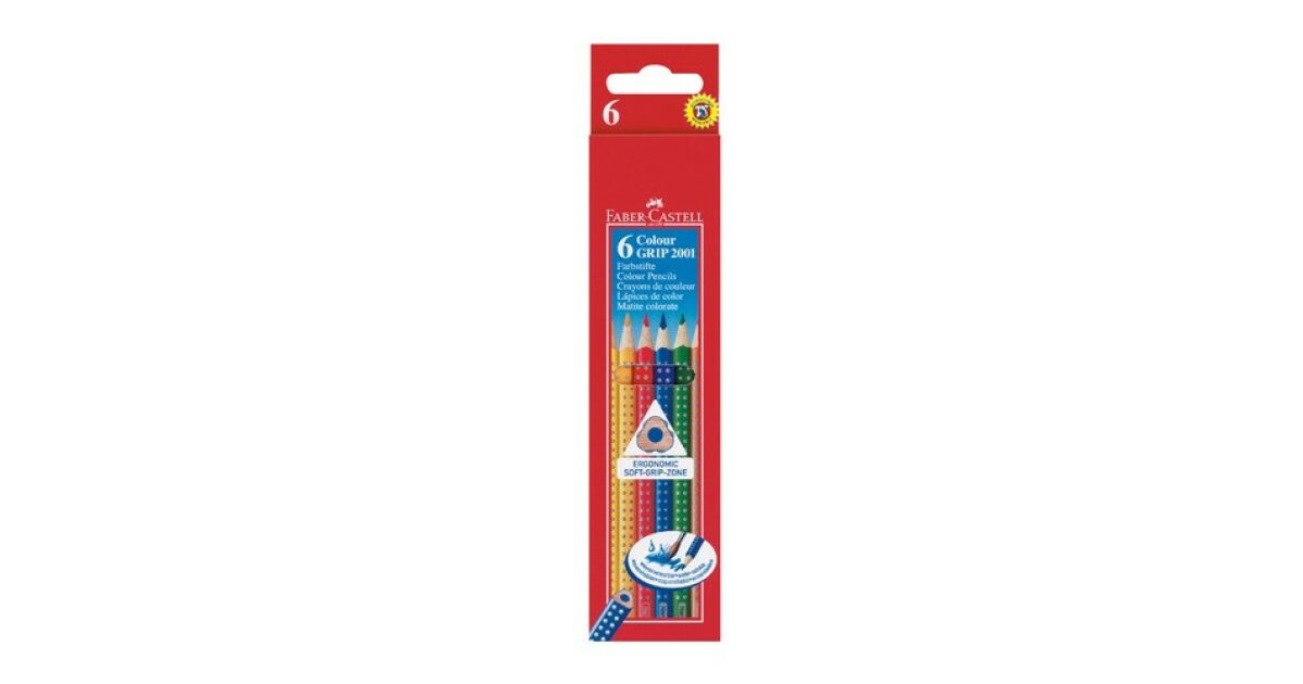 This 6-piece Faber-Castell Grip 2001 coloured pencil set is perfect for drawing, painting, and creative projects. The triangular shape provides a comfortable grip, and the SoftGrip zone prevents your fingers from slipping.