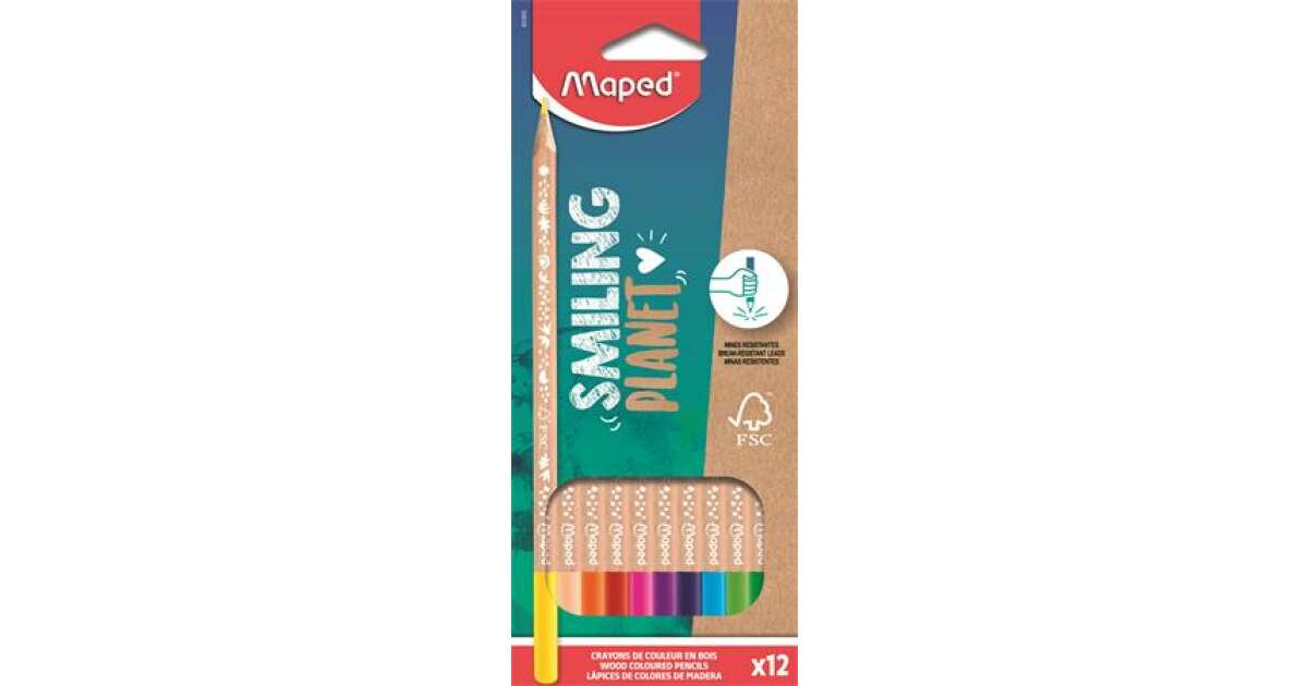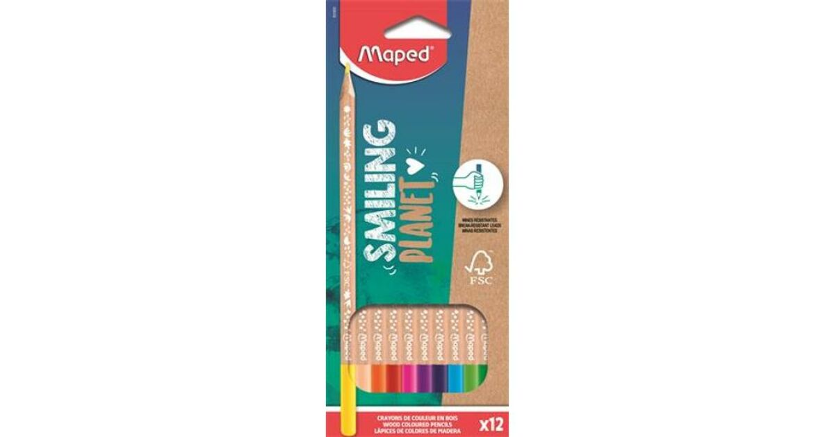 Get ready to unleash your creativity with MAPED Smiling Planet colored pencils! This 12-piece set not only offers gorgeous colors but also cares for the environment. They're made from FSC-certified wood and include recycled materials, so you can contribute to a better planet. 😊