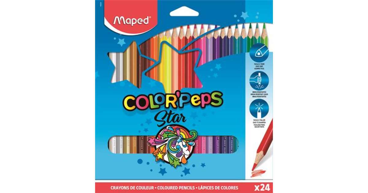 MAPED Color'Peps Star Colored Pencils: 24 vibrant colors, triangular barrel 🌈
