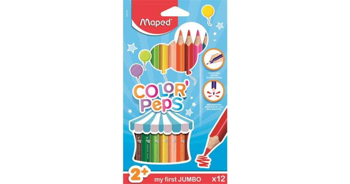 MAPED Color'Peps Jumbo colored pencils are ideal for drawing, coloring, creative projects, school, and home. Thanks to the break-resistant tips, you can enjoy drawing for a long time.