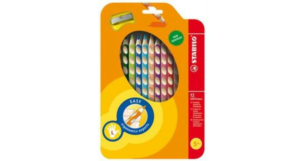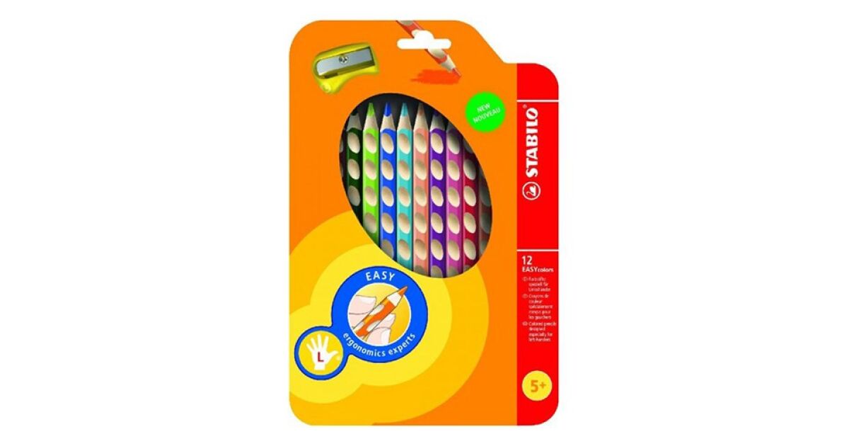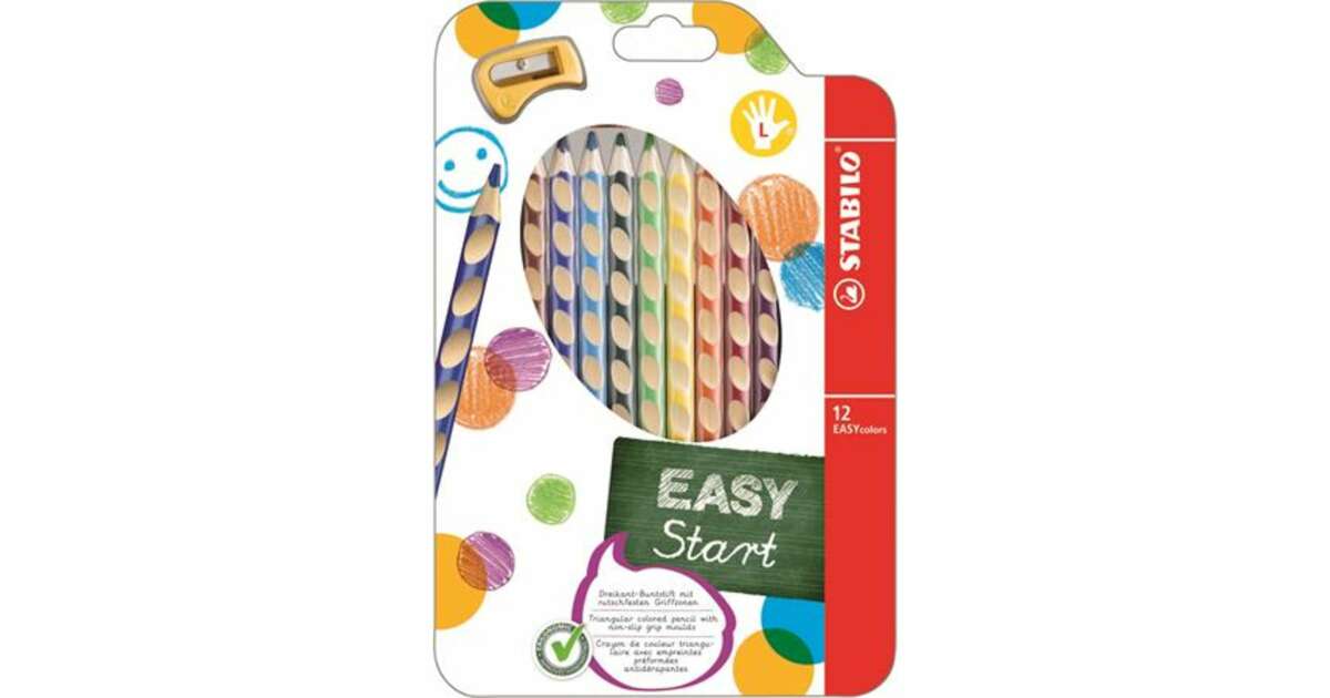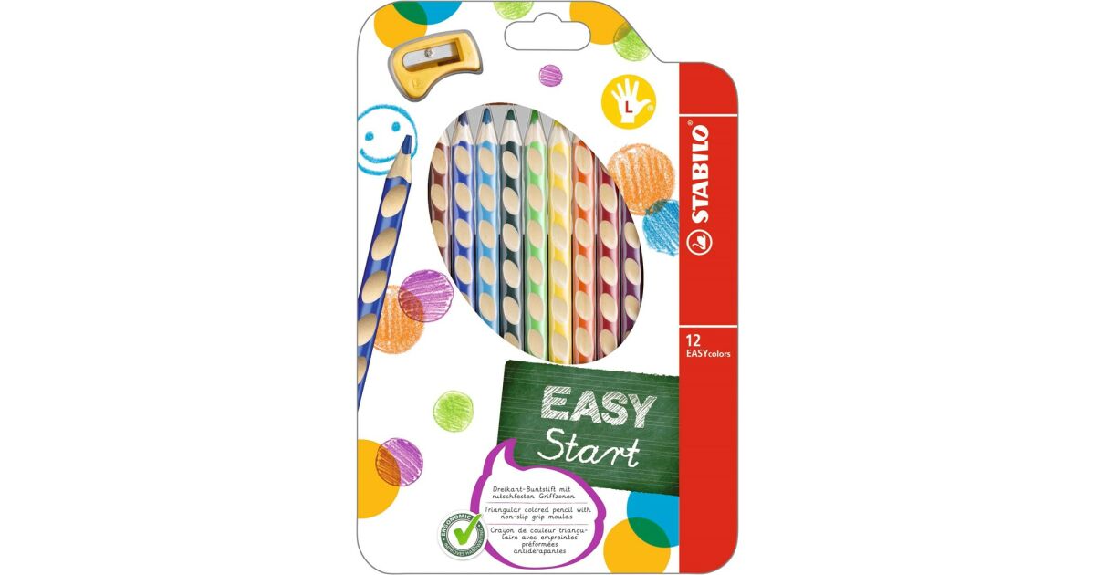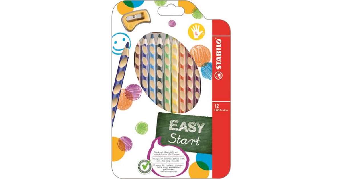 This 12-piece STABILO EasyColours colored pencil set is specifically designed for left-handed children. Thanks to its ergonomic, triangular design, it provides a comfortable grip and makes drawing easier.