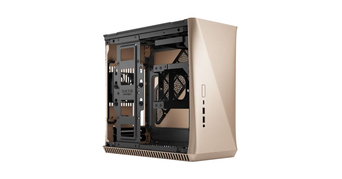 This stunning gold-colored Fractal Design Era ITX case is perfect if you're looking for a compact yet spacious computer case for a Mini-ITX motherboard. The modern, elegant design and practical features will satisfy all your needs.