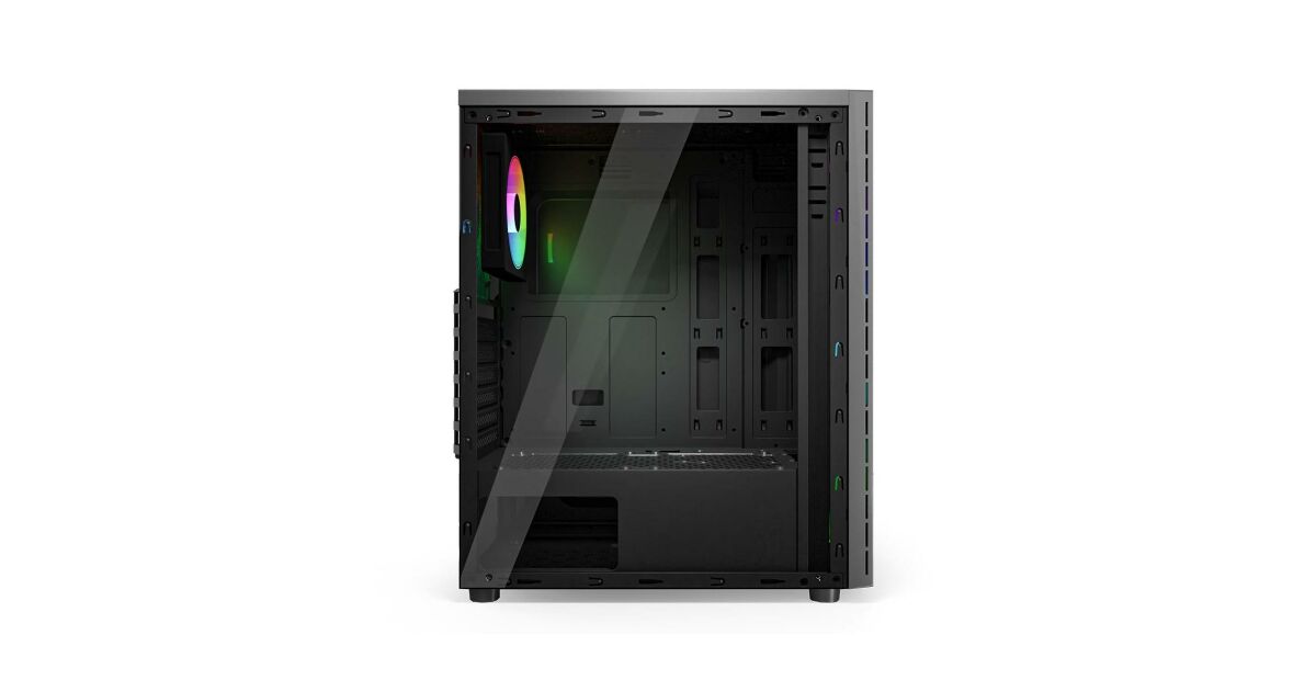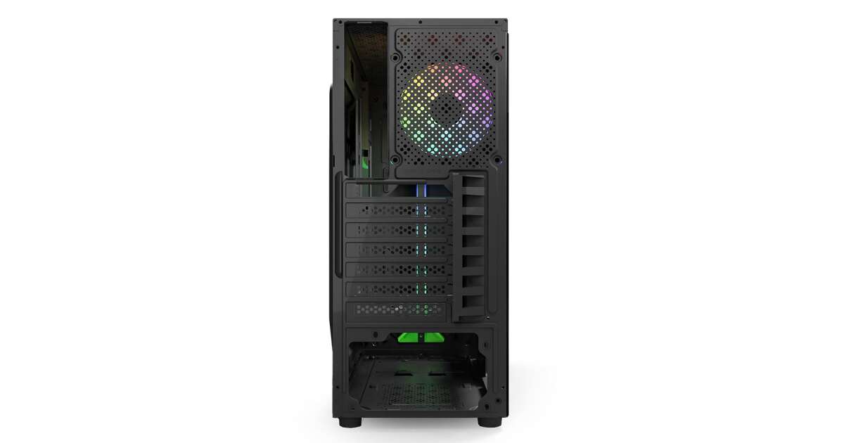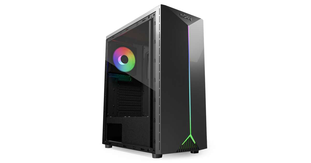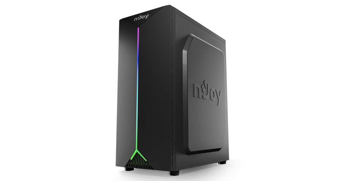 This modern NJOY ANIL computer case is perfect for anyone looking for a stylish and functional case for their desktop PC. The black case's elegant look is enhanced by RGB lighting, while the spacious interior provides ample room for your components.