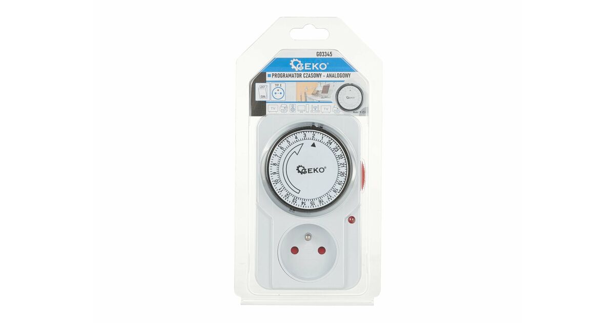 This handy Geko G03345 programmable socket with an analog timer helps you easily and efficiently control your electrical appliances and save energy. It's easy to program and can be controlled daily, so you can automate the operation of lamps, fans, heaters, and other devices.