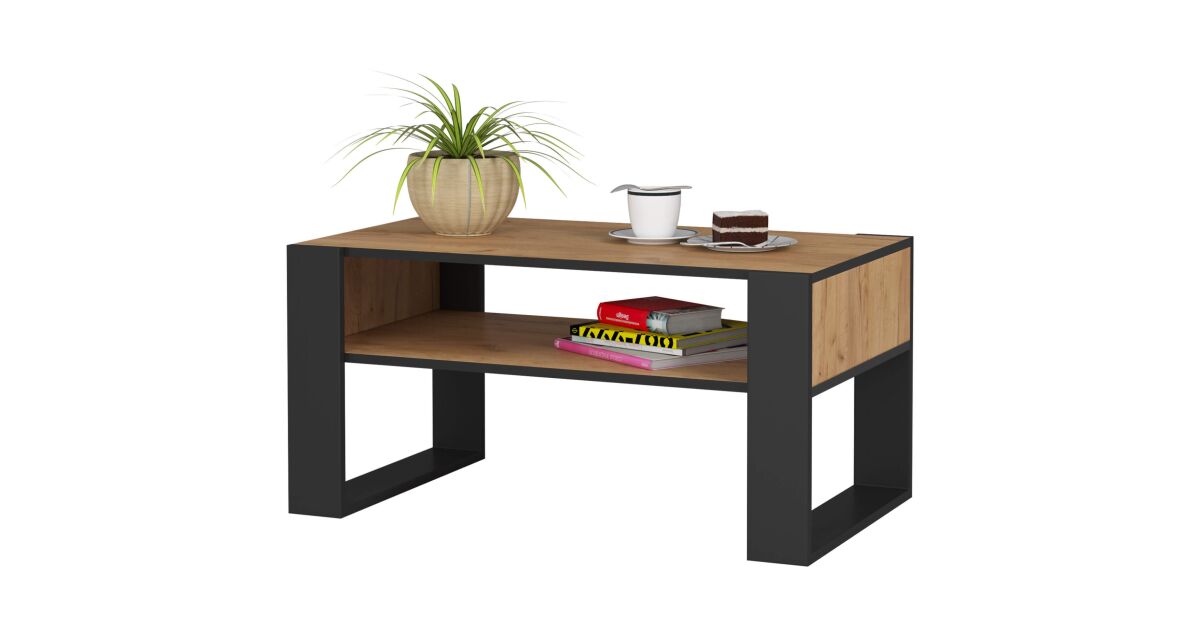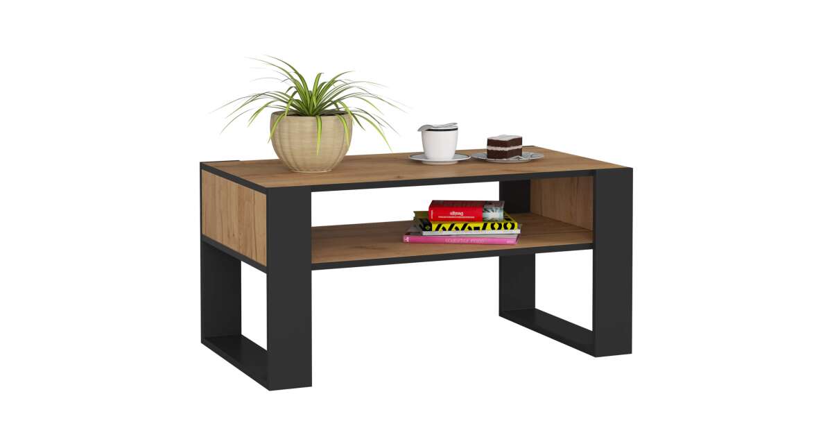 Akord Domi Coffee Table - Walnut Craft/Black, 92x45x53cm, Laminated Top, ABS Edge, Matt Black Front, Assembled