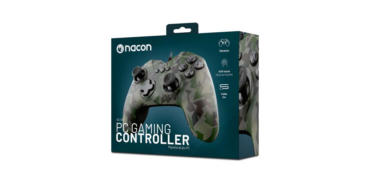 Nacon GC-100, PC (Windows), Vibration, USB, Forest Camo, Wired controller description of