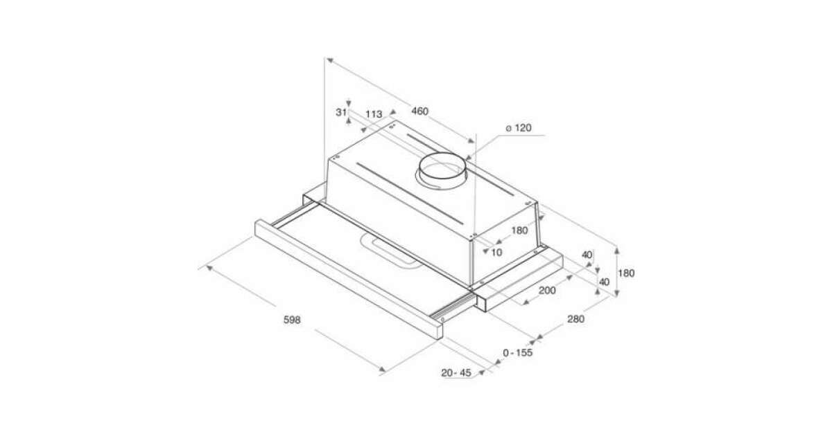 Features: - Energy class: D - Standard air delivery: 304 m³/hour. - Annual energy consumption: 61.6 kWh - Minimum air delivery: 125 m³/hour - Noise level (Min.): 46 dB(A) - Noise level (Max.): 62 dB(A) - Input voltage: 220-240 V - Frequency: 50 Hz - Bulb type: Led bulb - Number of bulbs installed: 2x 6 W - Product type: telescopic hood - Speed settings: 3 - Grease filter material: aluminium - Controls: buttons - Special Features:Washable grease filter - Dimensions (w x h x d): 59,8 x 18 x 30 cm