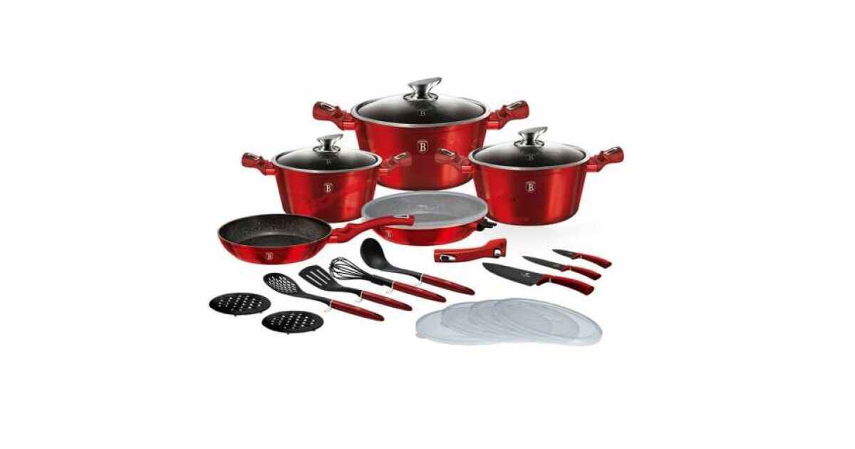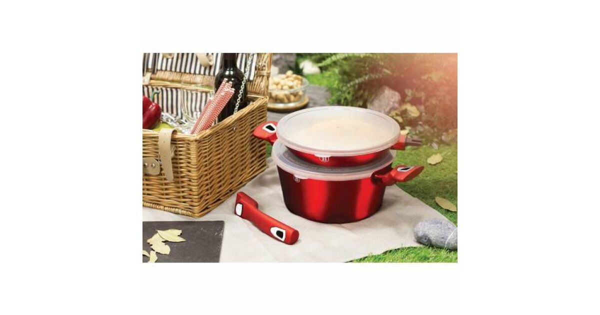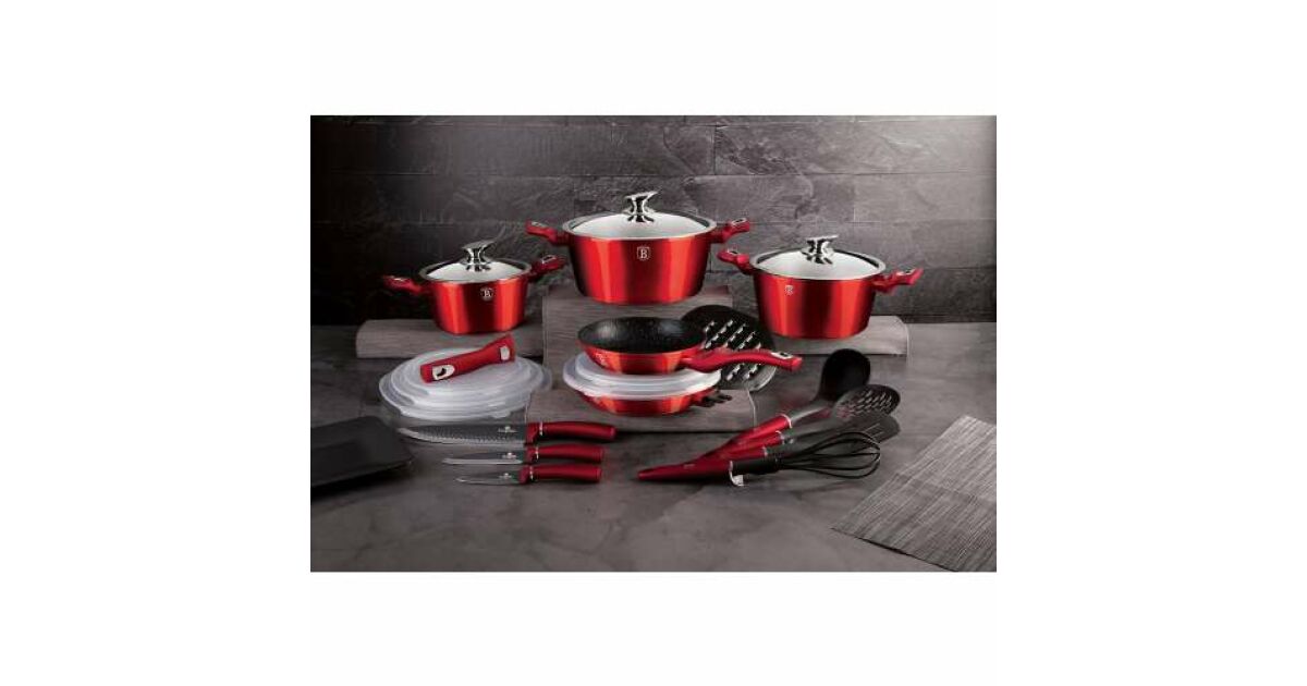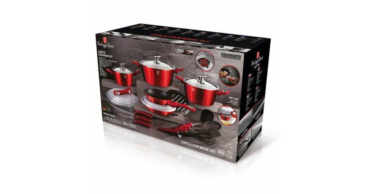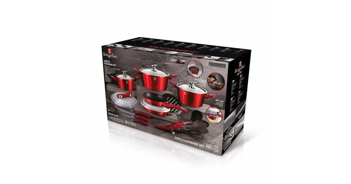 Reduced Price! - Berlinger Haus BH-7180 22-Piece Cookware Set with Detachable Handle, Metallic Line Burgundy Edition 🔥