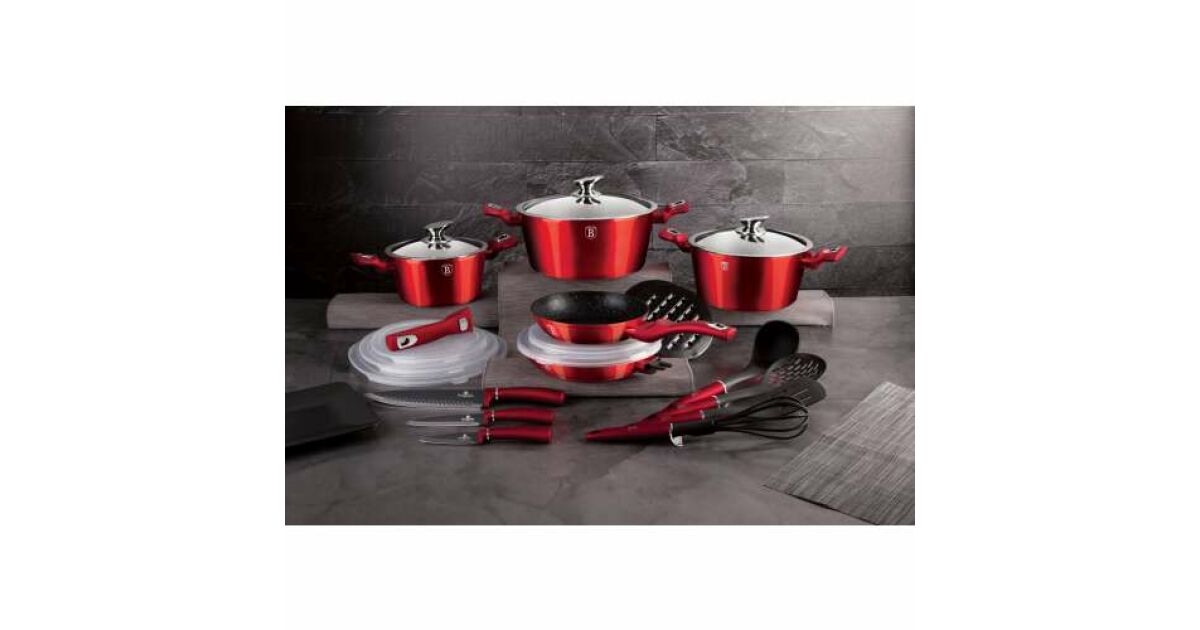 Reduced in value - Berlinger Haus BH-7180 Metallic Line Burgundy Edition Dinnerware set with detachable handle, 22 pieces  135785878