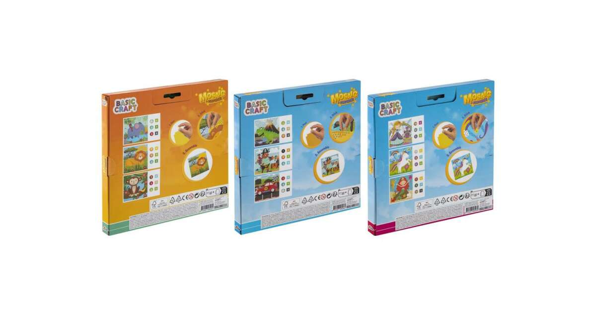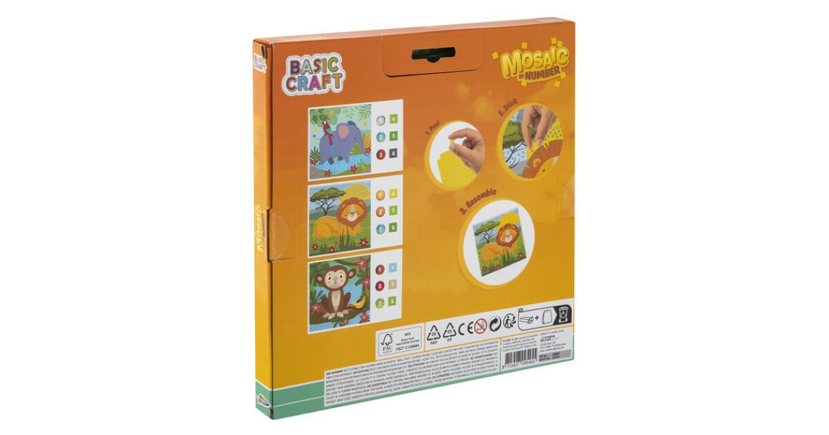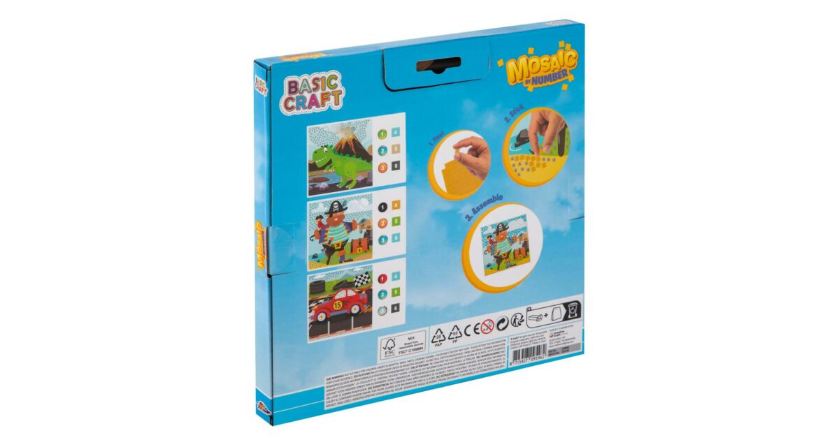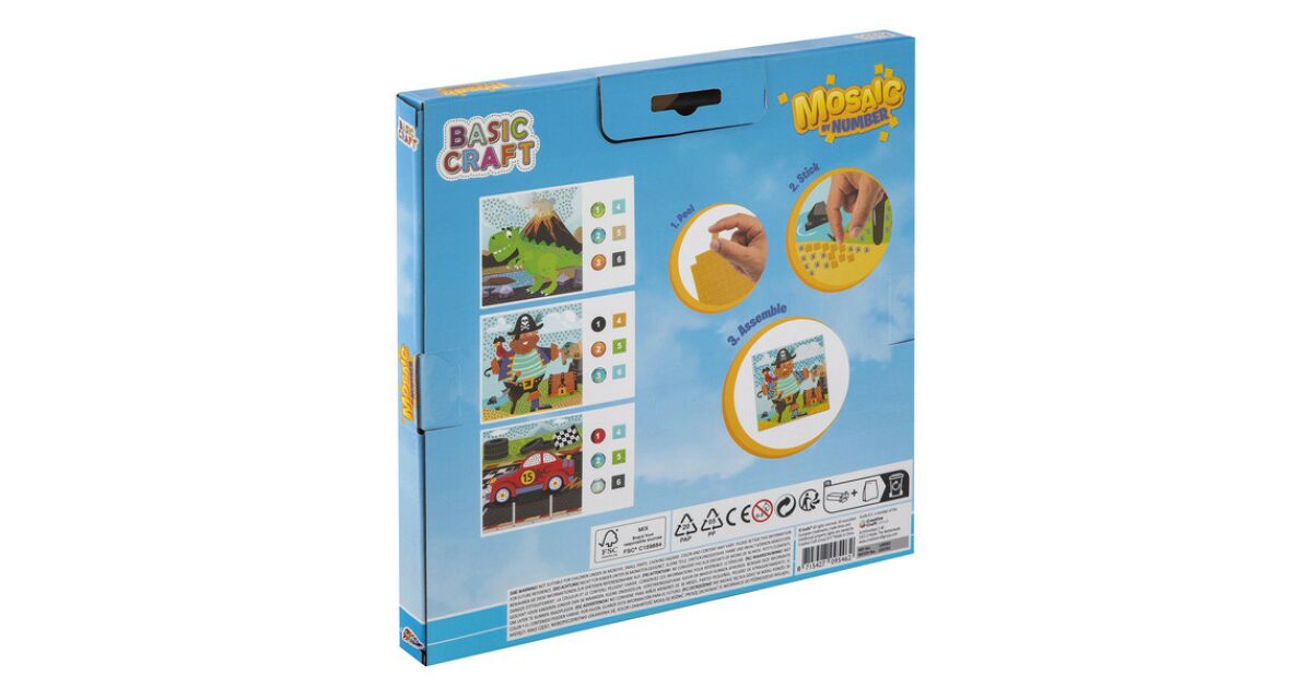 Boost your child's creativity and dexterity with this fun mosaic making game! The package includes 3 pre-drawn pictures where colorful mosaic tiles need to be glued on according to the numbers.