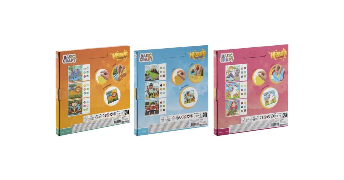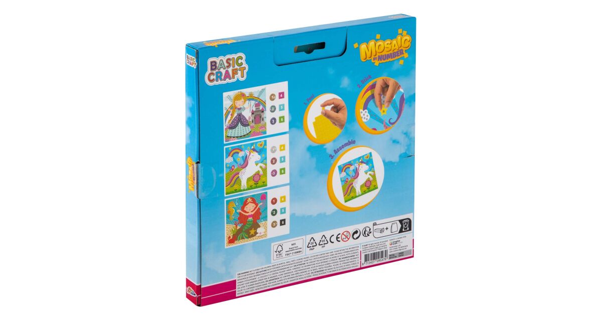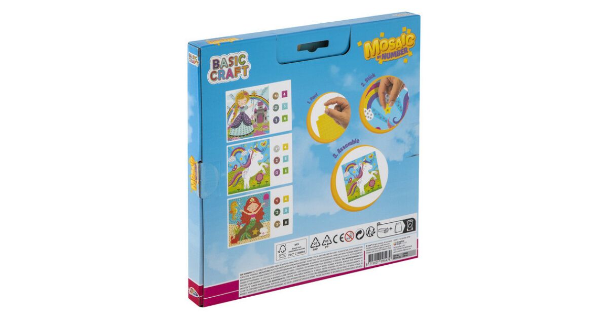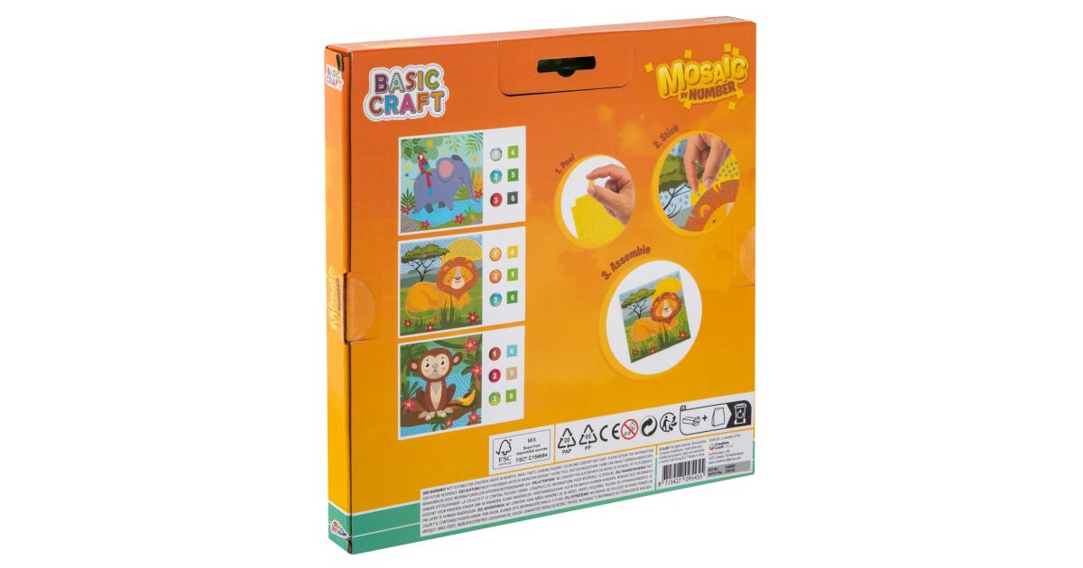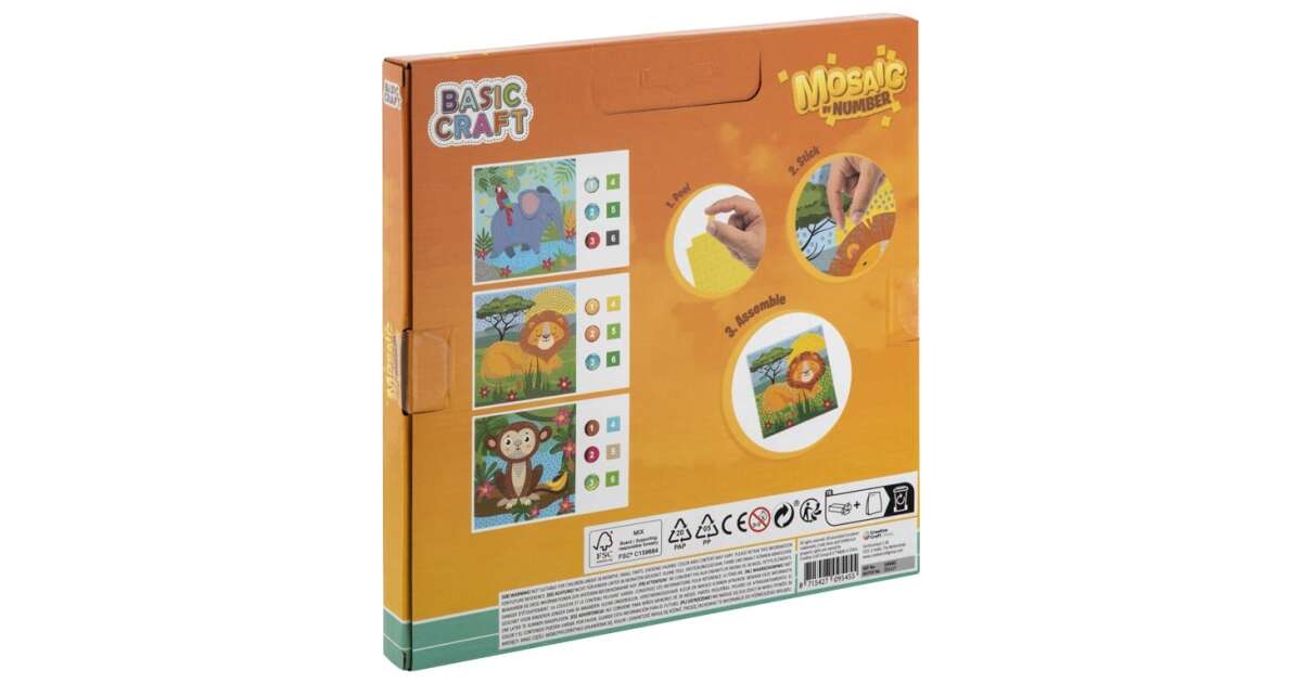 Boost your child's creativity and dexterity with this fun mosaic making game! The package includes 3 pre-drawn pictures where colorful mosaic tiles need to be glued on according to the numbers.