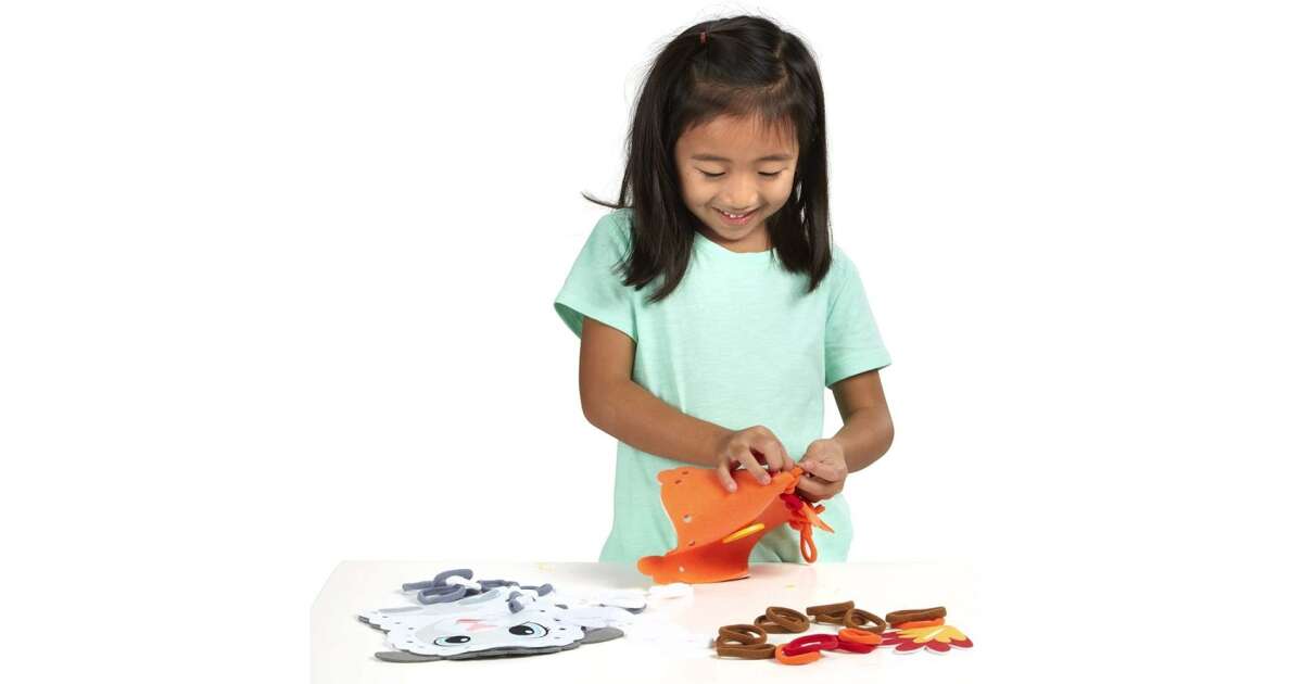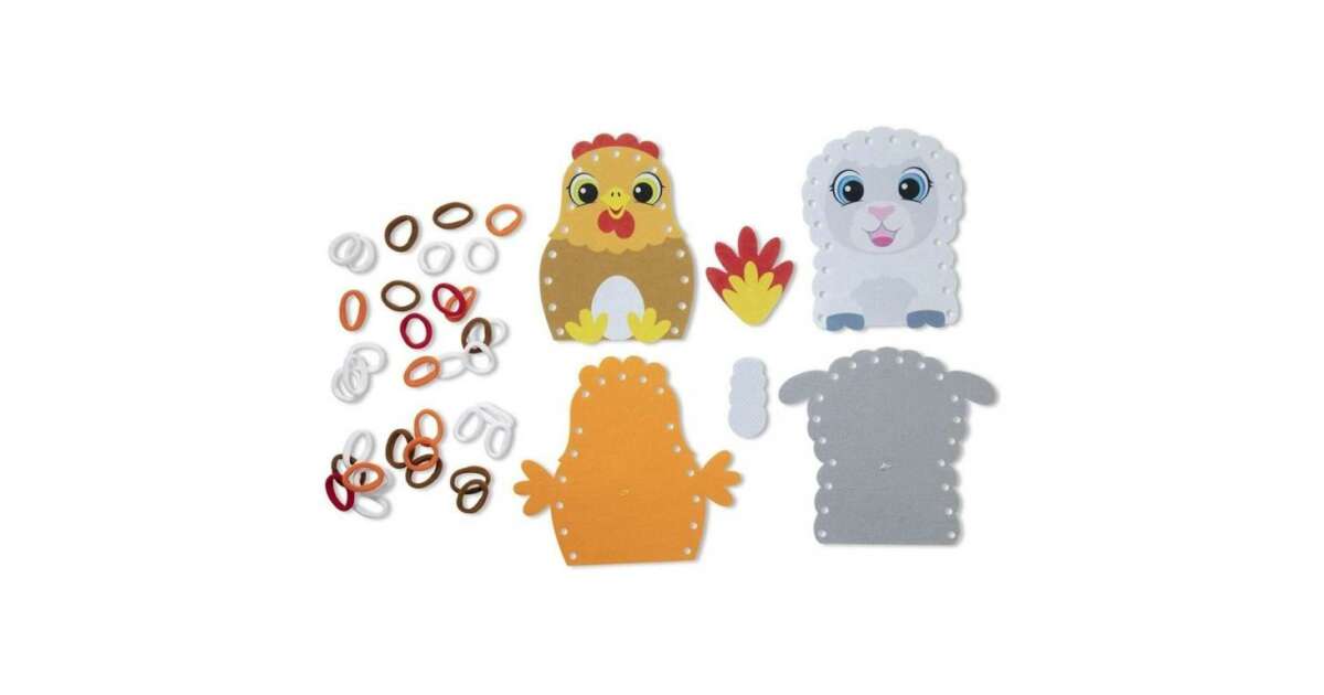 This Melissa & Doug creative kit is perfect for children aged 3 and up who love crafting and playing. Make your own farm animal puppets with this fun and easy kit! You can easily assemble an adorable chicken and a lamb from the felt sheets.