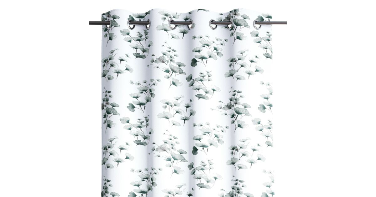 Blackout curtain SERENITY color white printed pattern floral style classic silver silver metal rings blackout 140x250 AmeliaHome description of