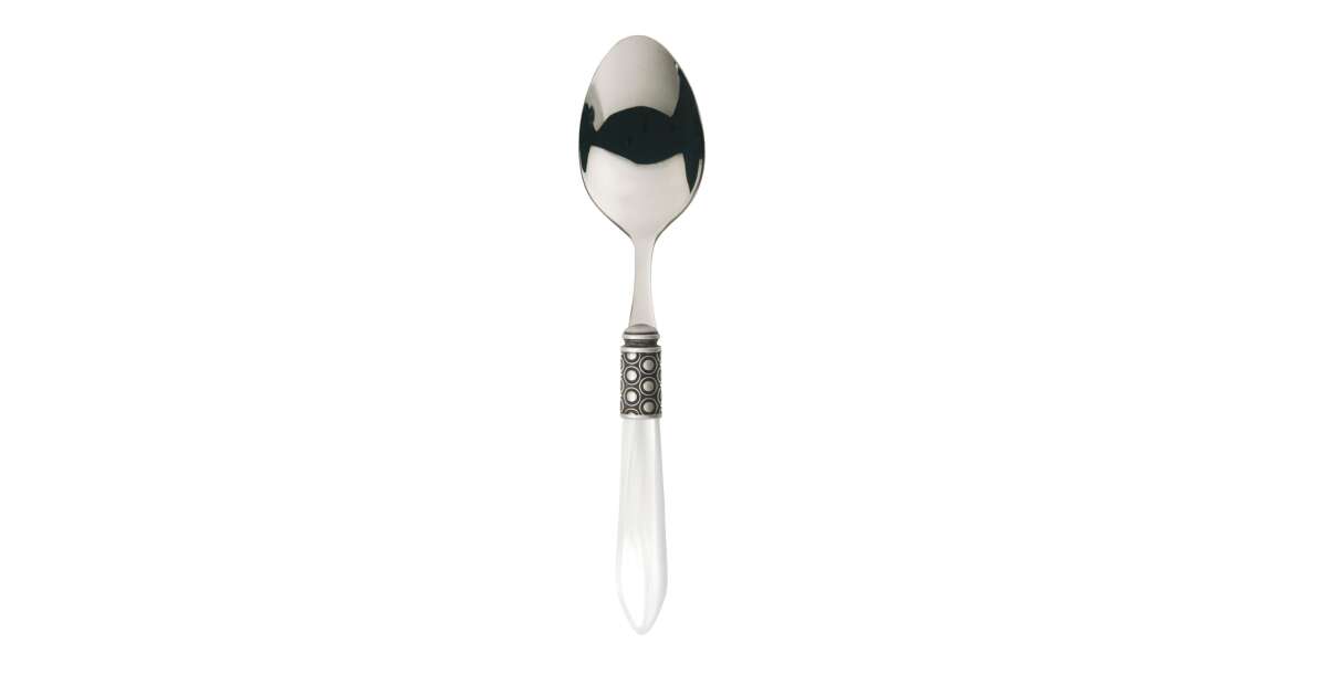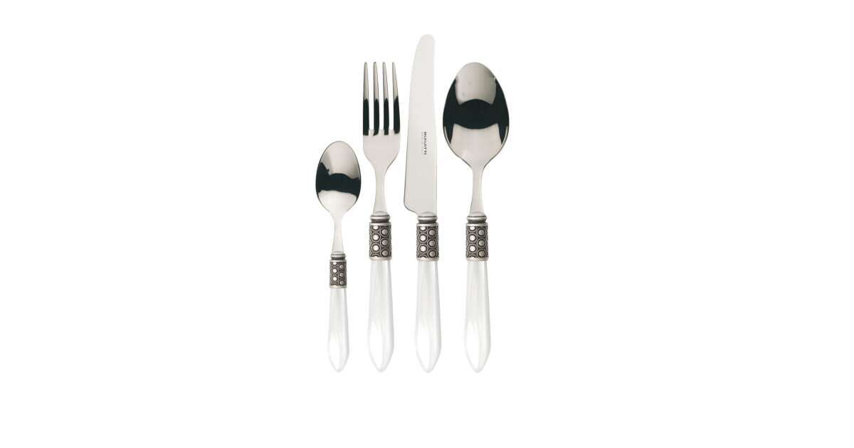 This 24-piece Casa Bugatti Optical cutlery set is perfect for those who appreciate quality and elegant style. Made from premium stainless steel, it features beautiful mother-of-pearl white handles and antique silver accents. The set includes enough cutlery for 6 people.
