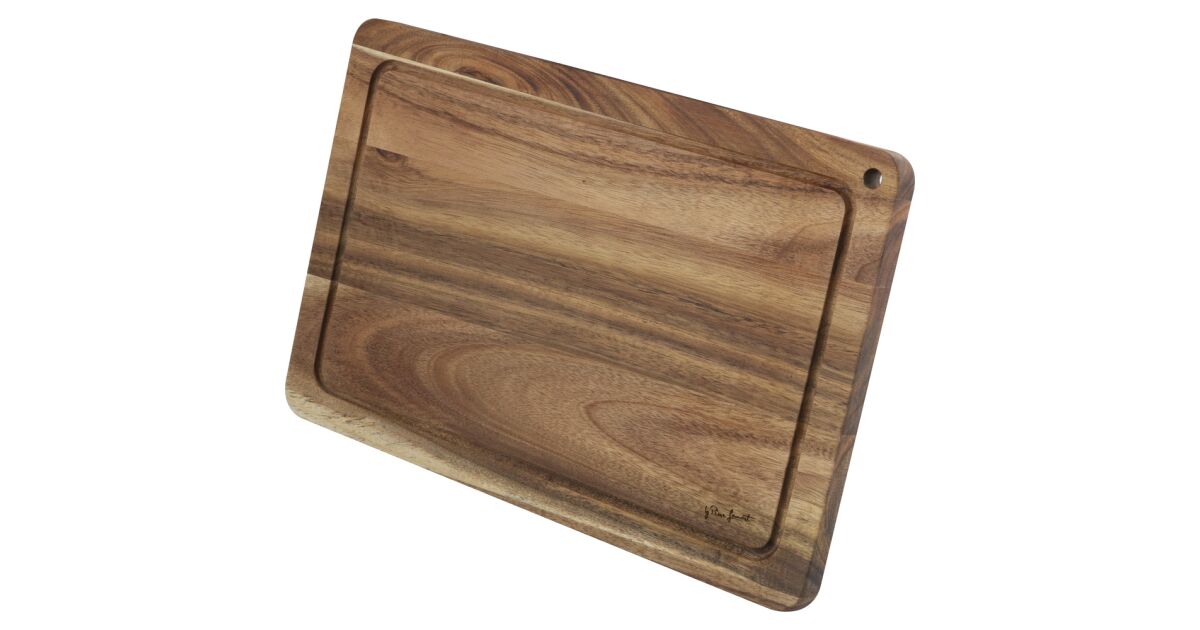 This Lamart cutting board is made of high-quality acacia wood, making it super durable and hard-wearing. The recessed cutting surface prevents juice from running off and keeps the surface clean. It's ideal for chopping vegetables, fruits, and meats.
