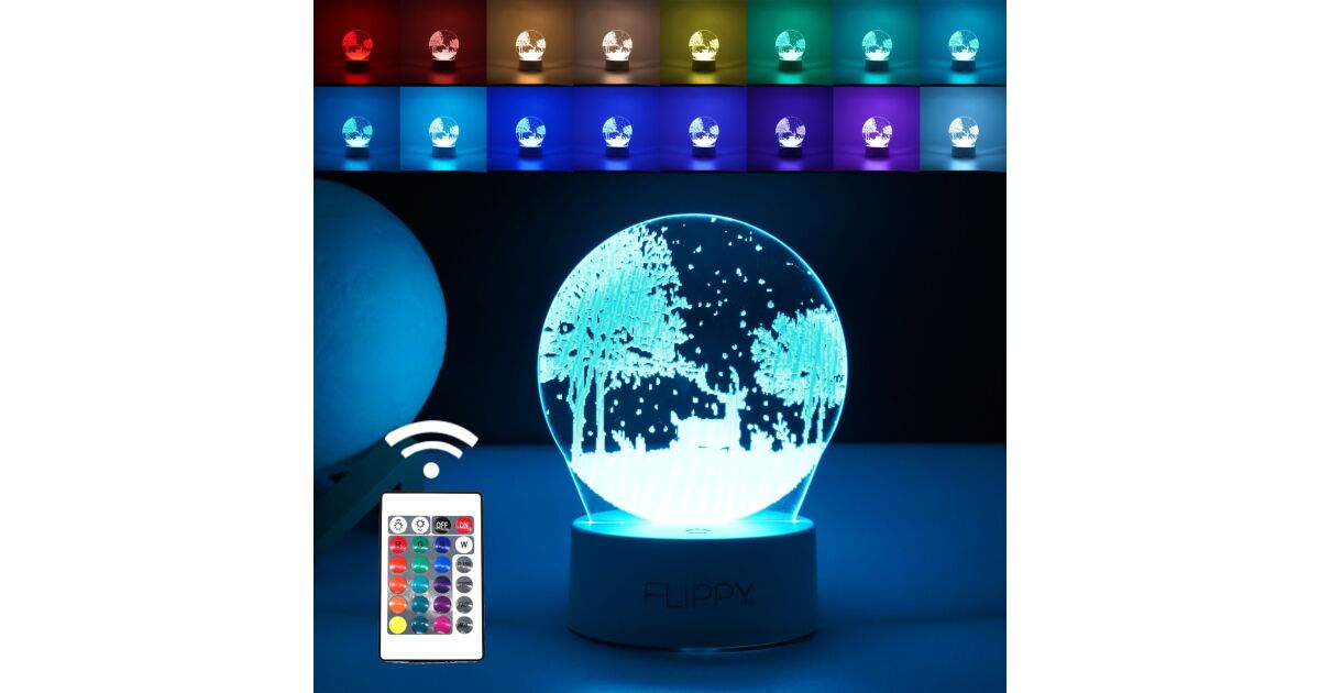 -Flippy 3D LED Lamp, Winter Landscape, with remote control, two USB power modes and batteries, 20 cm high, made of acrylic and multicolored light, white description of