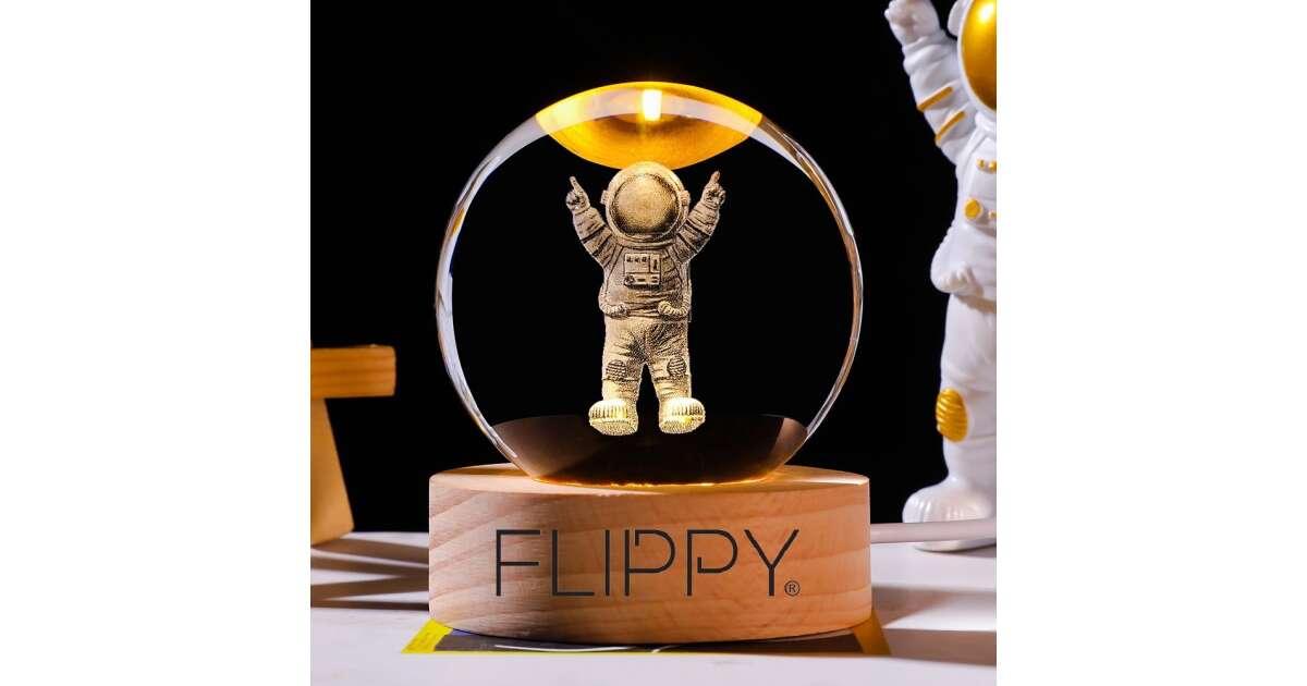 This Flippy LED lamp with a crystal ball is so much more than just a light source; it's a unique decorative piece that brings a touch of magic to any room. Laser-engraved in 3D, the 6cm crystal ball features an adorable astronaut, creating a stunning visual effect.