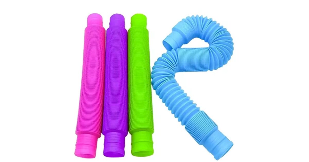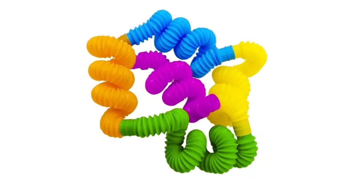 Manual dexterity toy - colourful, squeezable-pull-out tubes, pack of 20 description of
