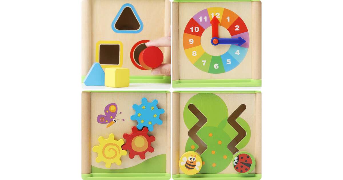 This high-quality wooden activity cube hides five exciting games that help develop children's fine motor skills, hand-eye coordination, and cognitive development. Long-lasting fun is guaranteed thanks to its versatile design!