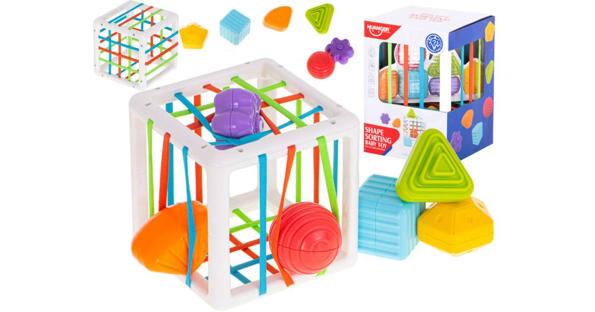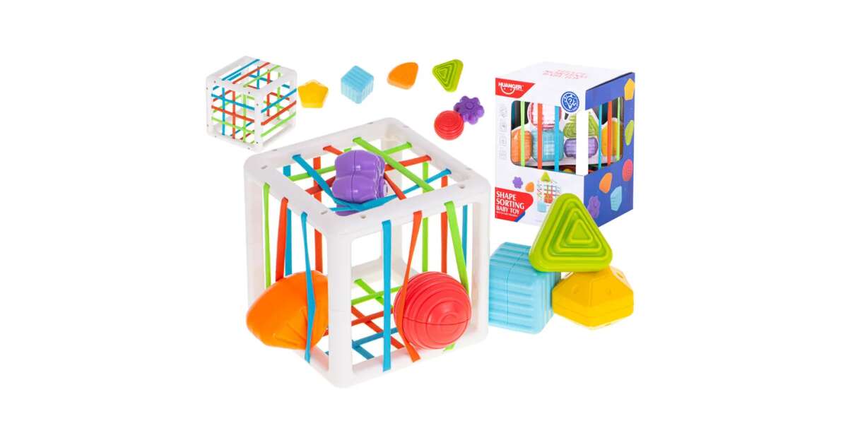 This fun shape sorter cube toy is perfect for children over 12 months old! It helps develop fine motor skills, problem-solving abilities, and color and shape recognition. The colorful rubber bands and different shaped blocks keep little ones engaged and entertained for hours.