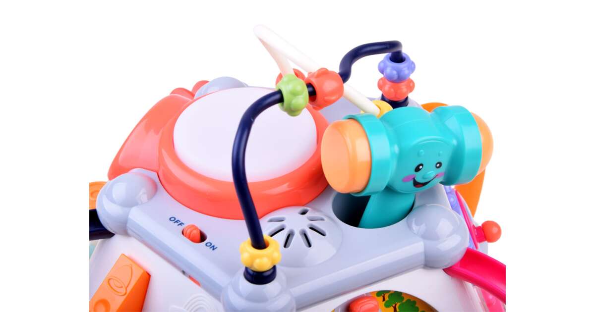 - 🔨 Hammer: With colorful buttons and sound effects. Rolling the ball through the transparent tunnel develops hand-eye coordination.