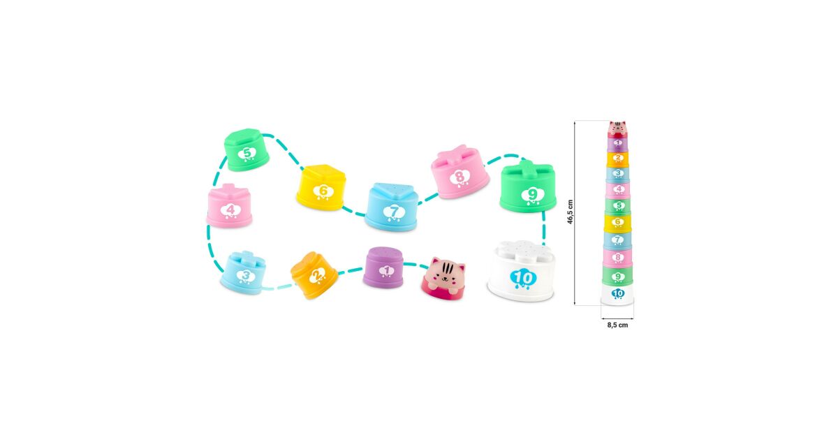 Ricokids Montessori sensory educational toy for babies and children, 3-in-1 stackable tower, bath toy, sand moulds, 10 pieces, +6 months