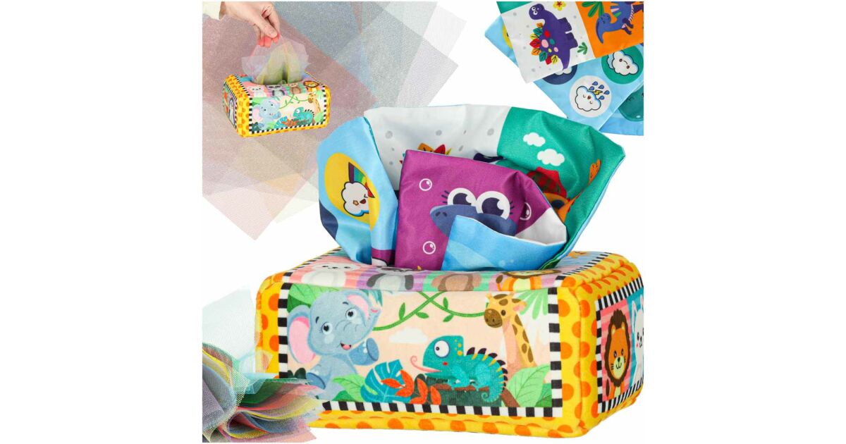 Montessori sensory plush tissue box with coloured tissues, 3 months+ 130672133