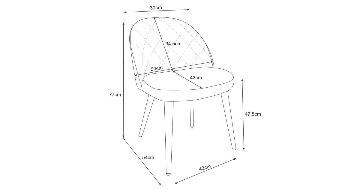 This stylish dining chair is perfect for both modern and classic interiors. The soft, quilted velour upholstery provides a comfortable seat, while the black metal legs create an elegant contrast with the grey upholstery. It's ideal for everyday use and easy to clean.