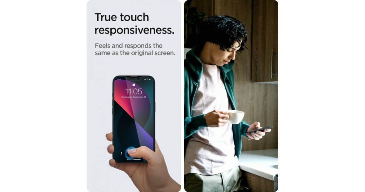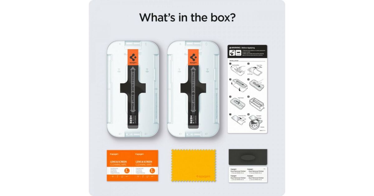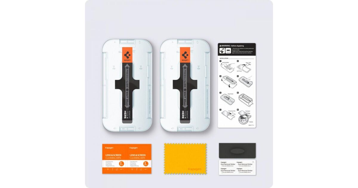 This 2-pack Spigen Glas.tR EZ Fit screen protector offers perfect protection for your iPhone 13 Pro Max screen against scratches and damage. Thanks to the revolutionary EZ Fit system, application is a breeze! 👶
