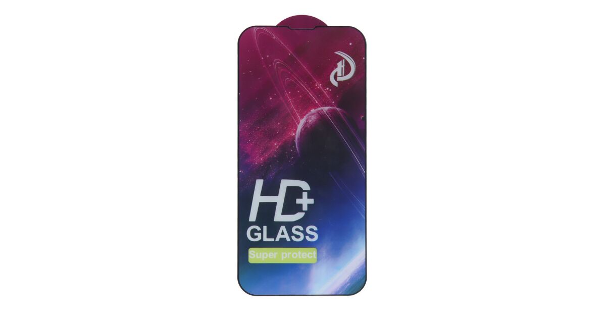 iPhone 13 / 13 Pro / 14 Screen Protector, Tempered Glass, Front, 9D, Hardened, Curved, with Black Frame description of