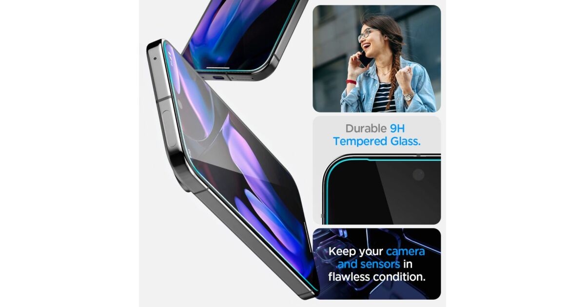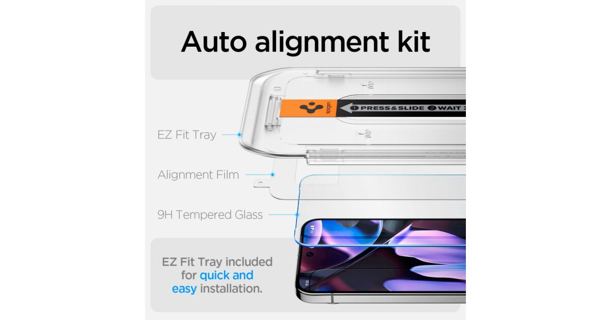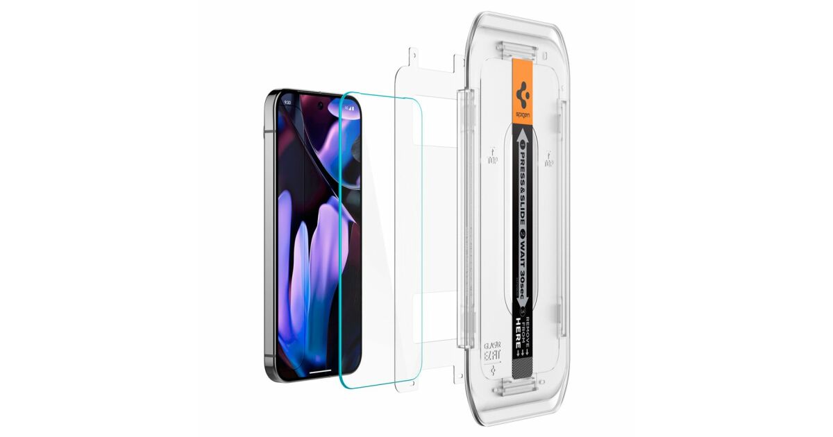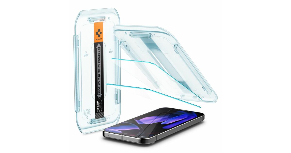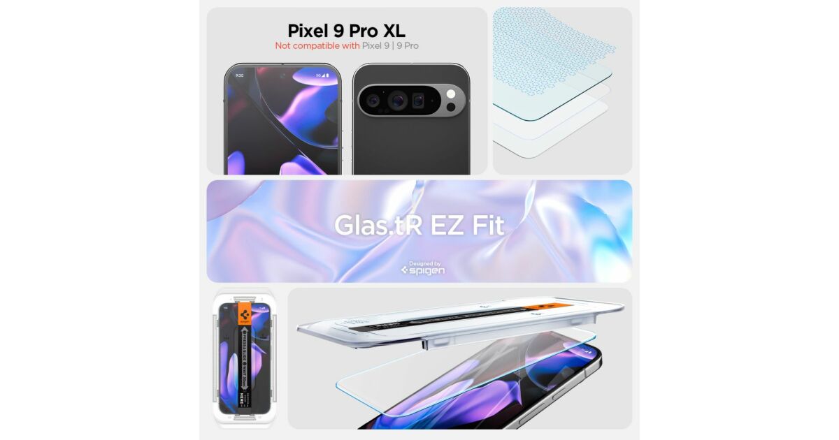 The set includes two Spigen Glas.tR EZ FIT tempered glass screen protectors, specially designed for the Google Pixel 9 Pro XL. These screen protectors are transparent, offering excellent protection against scratches, impacts, and fingerprints. Installation is super easy thanks to the EZ FIT system.