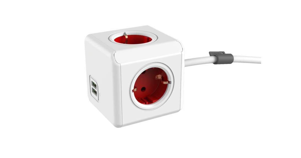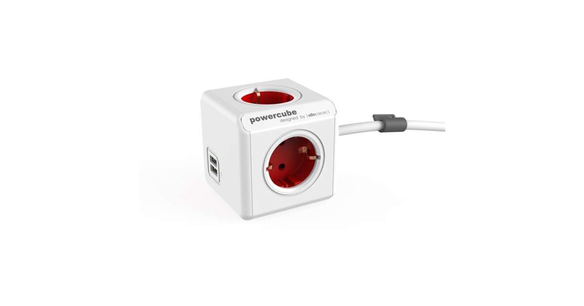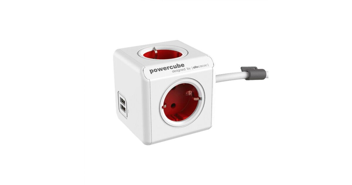 Allocacoc PowerCube Extended USB Power Strip 4DIN 1.5m Boston Red BN3058/1402RD/DEEUPC description of