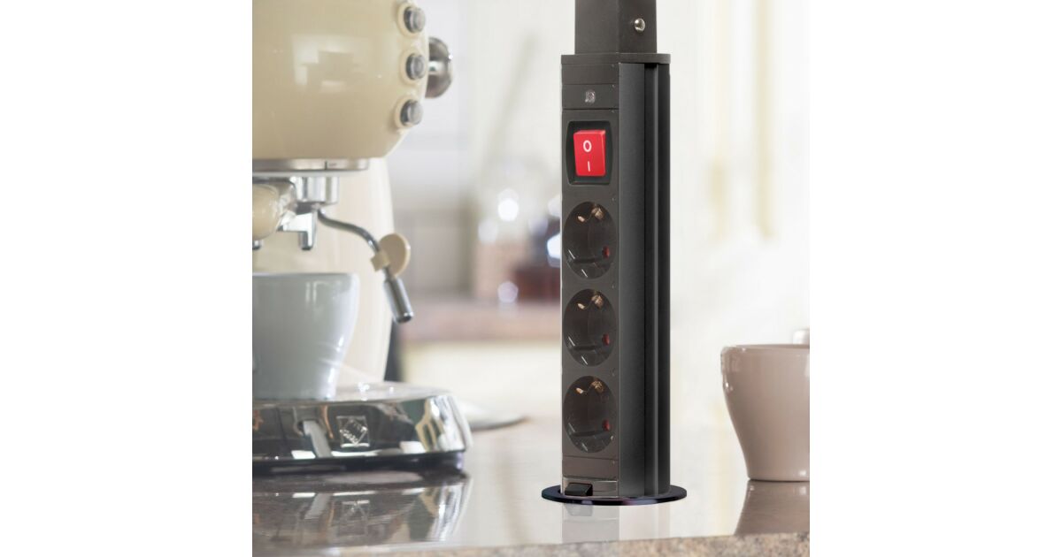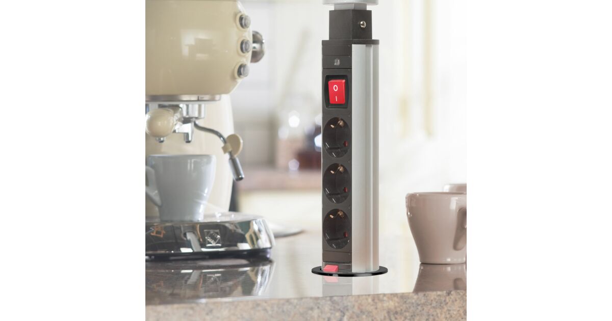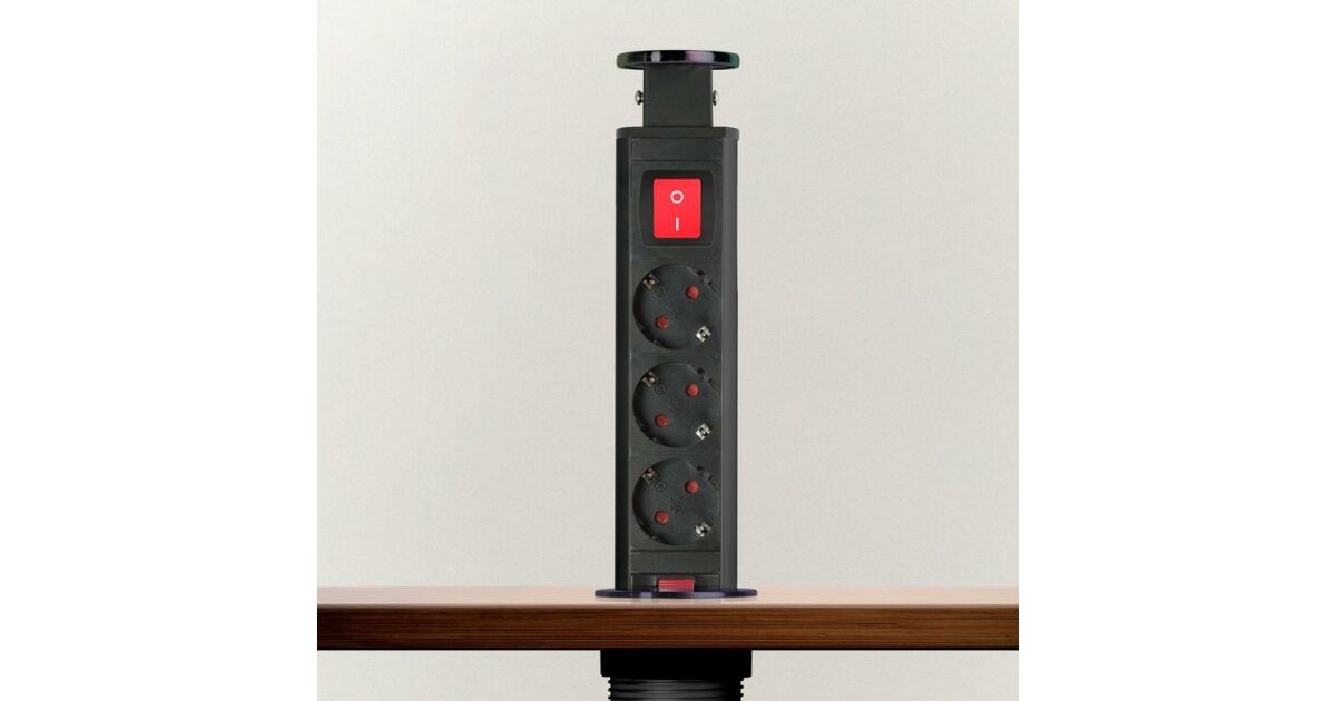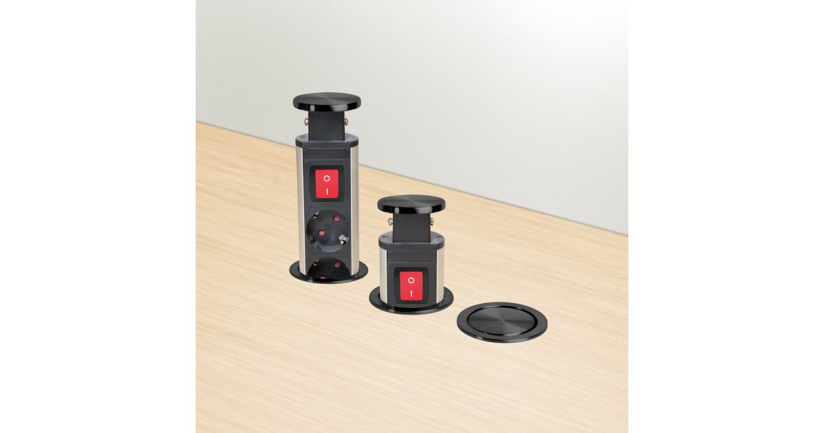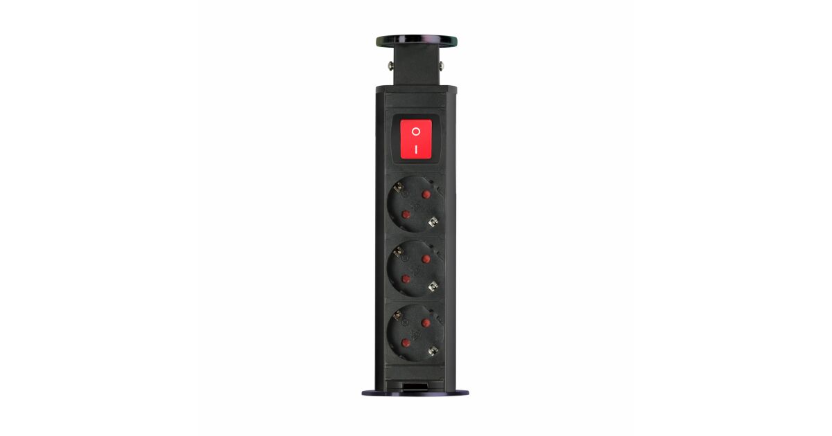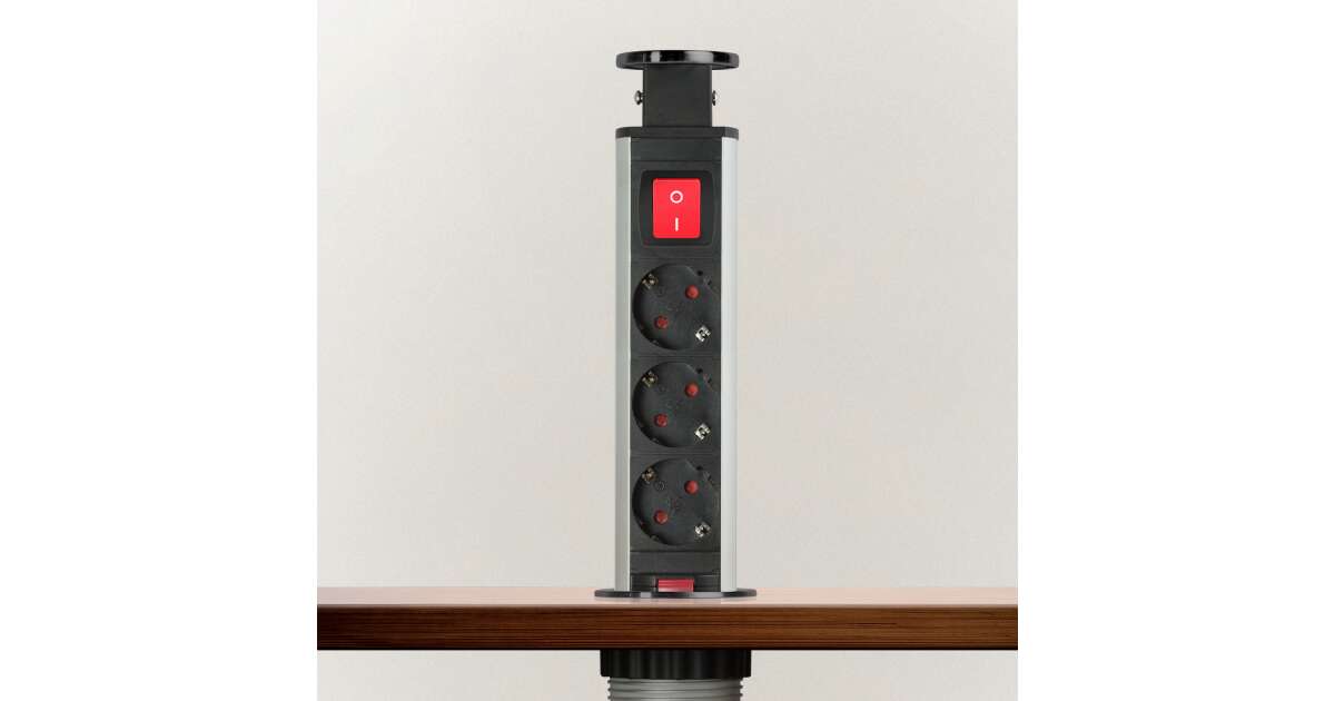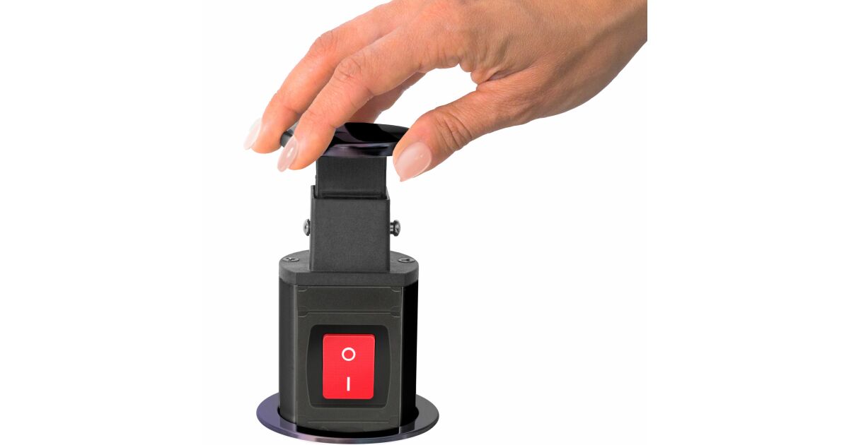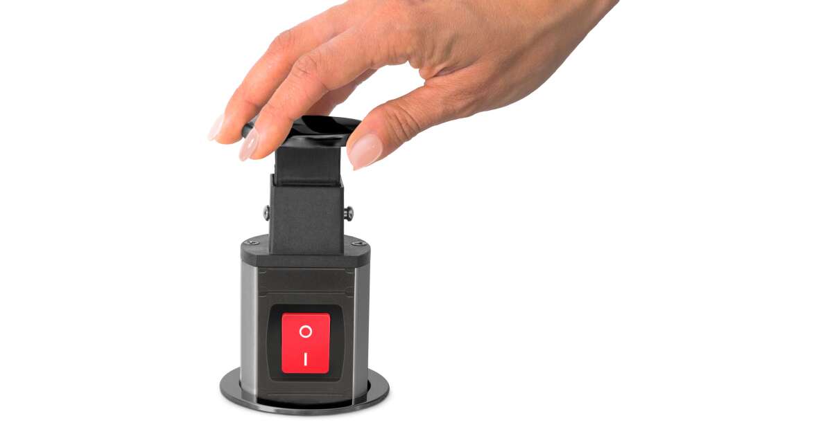 Recessed distribution box for office and home use, with metal housing, 3 sockets with child protection. Your desk and furniture should always be elegant and tidy, yet functional. The concealed distribution can be an excellent solution if, for example, you already have a ready-made kitchen, but do not have enough outlets in the desired location. In this case, a concealed distributor can be a great alternative without the need for wall cutting and extension of the electrical network. In one move you have 3 free sockets. Ideal for electrical appliances that you don't use all the time, toasters, kettles... When they are not in use, the "charging pole" can be hidden away in one easy movement, making cleaning, for example, easier and giving the room a tidy, clean look.