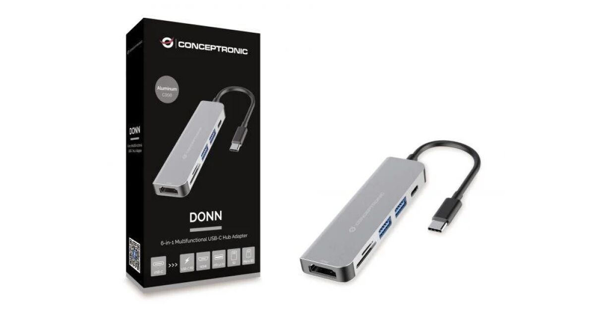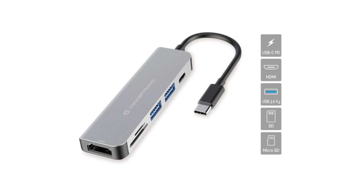 Conceptronic 6-in-1 USB-C Hub: The Perfect Companion for Your Laptop and Smartphone 💻📱