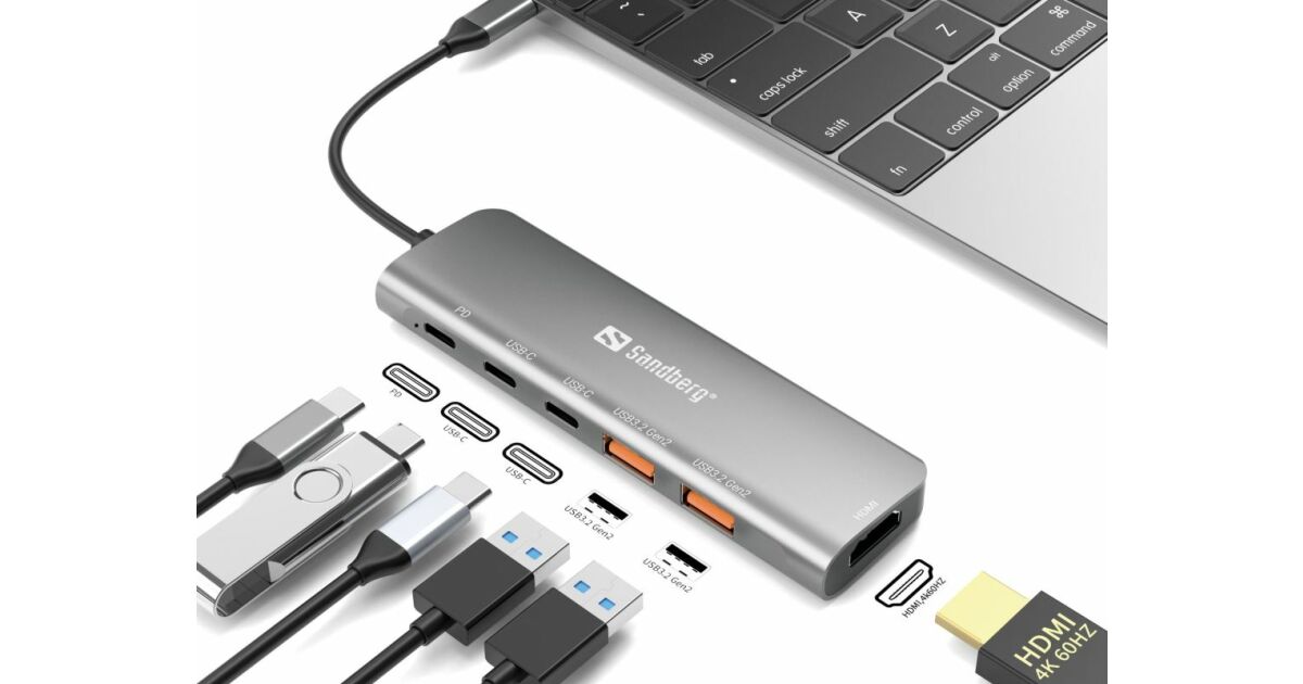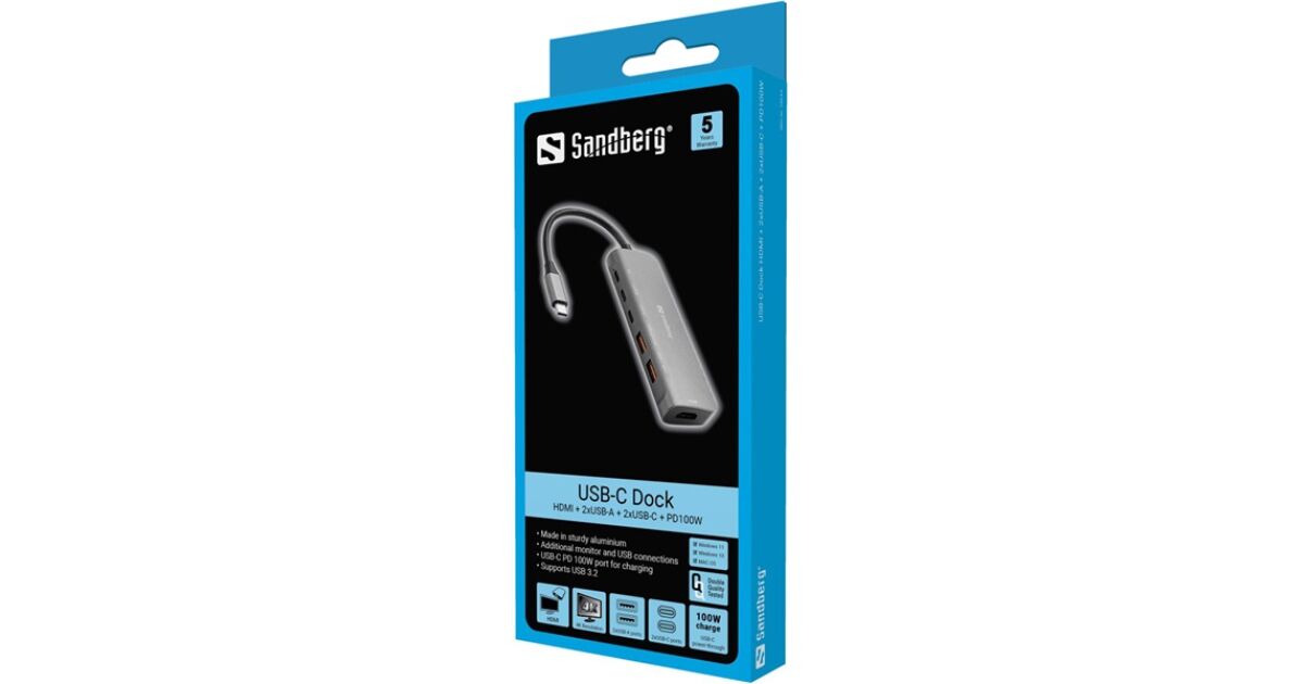 Sandberg USB-C Dock HDMI + 2xUSB-A + 2xUSB-C + PD100W Wired USB 3.2 Gen 1 (3.1 Gen 1) Type-C Aluminium