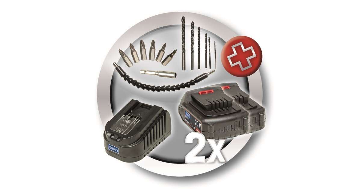 Scheppach CID30-20Li cordless 2-speed impact driver / drill 20 V (with 2 batteries and charger)
