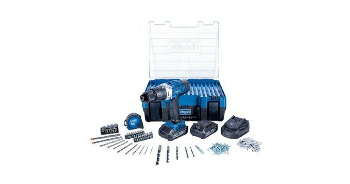 -Scheppach DTB20ProS Cordless 2-Speed Impact Driver/Drill 20V Set with 206 Accessories